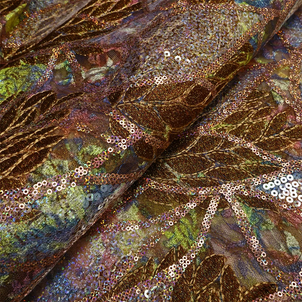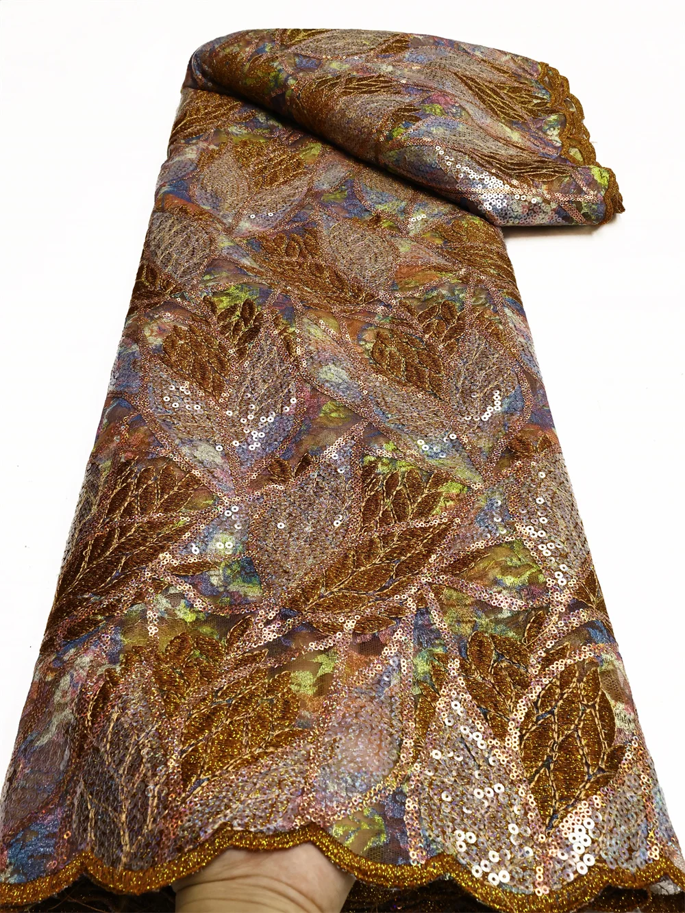High Quality African Lace Fabric Light Gold French Net Sequins Fabric Sewing Embroidered Lace Tulle Nigerian Lace Fabric 5Yards