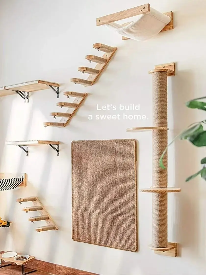 The wall-mounted design saves space in your room and is very suitable for climbing, sleeping and exercising. Suitable for cats of all ages.