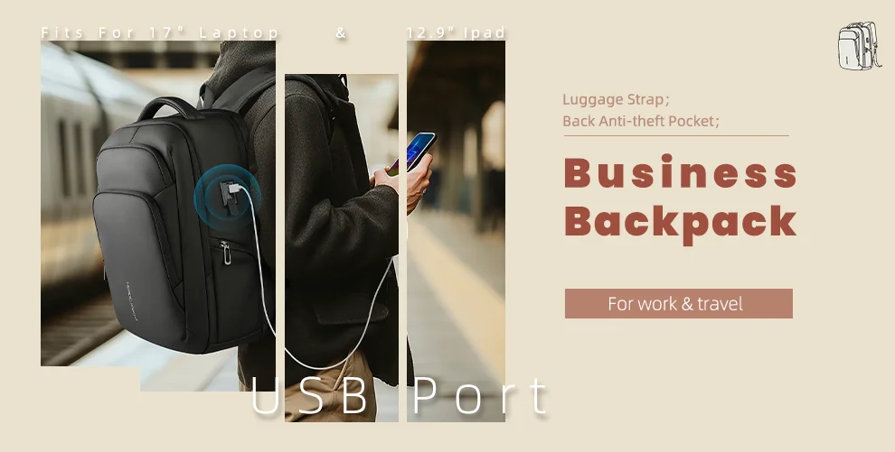 With an integrated USB port in the side part, you can connect your power bank inside the travel backpack and keep the phone in your pocket or hold it while walking. This handy port completes a very high quality backpack for daily use.