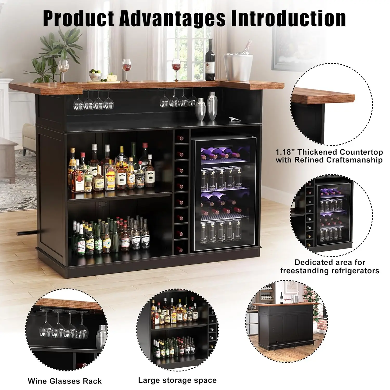 Home Bar Unit with Fridge Space, U-Shape Liquor Wine Cabinet, 63.1″ Mini Bar Table with Storage for Basement or, Customized