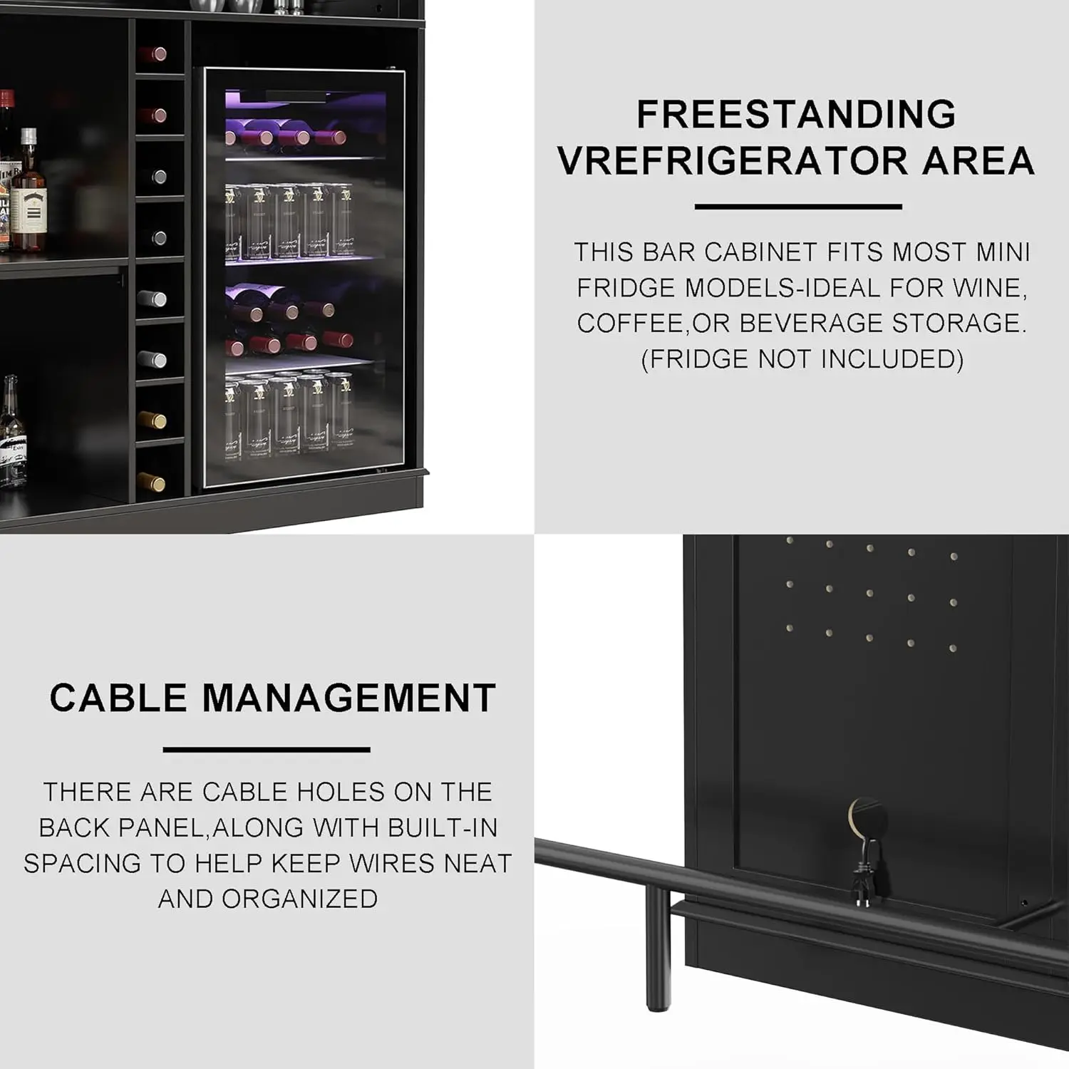 Mini Fridge Ready – Designed with a 19.8″ W x 19.9″ D x 34.7″ H compartment, this liquor cabinet offers a dedicated spot for most popular mini refrigerators, turning your bar unit into a complete beverage station.(Fridge not included)