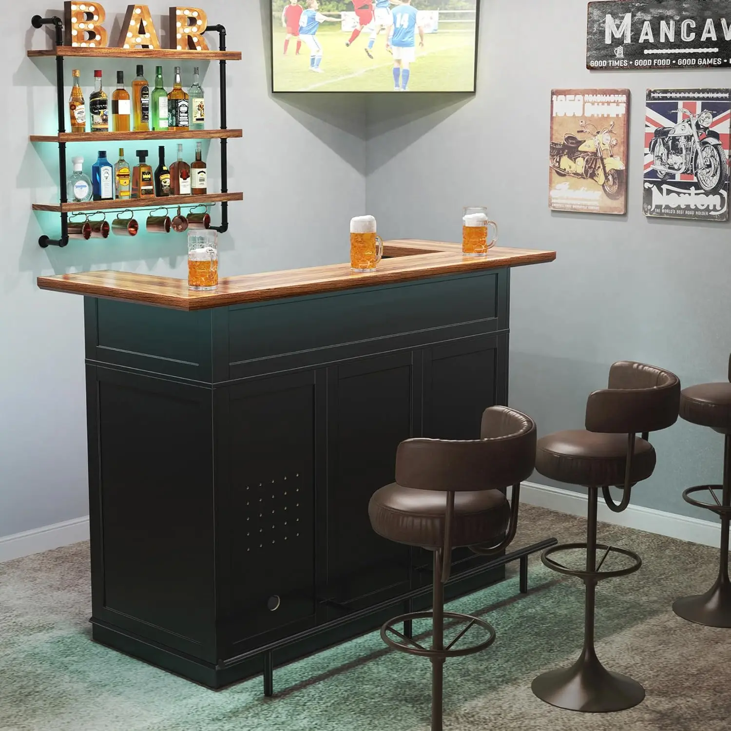 Professional Details & Modern Look – From the smooth black cabinet finish to reinforced side panels and thickened countertop edges, every detail is crafted to bring both durability and elegance to your indoor bar furniture