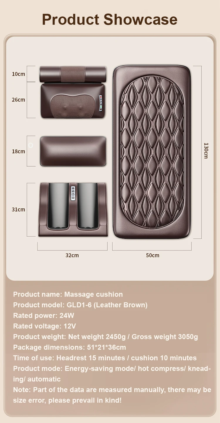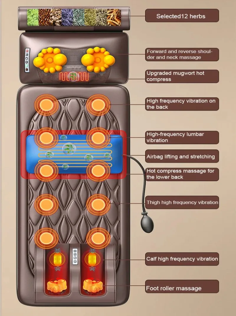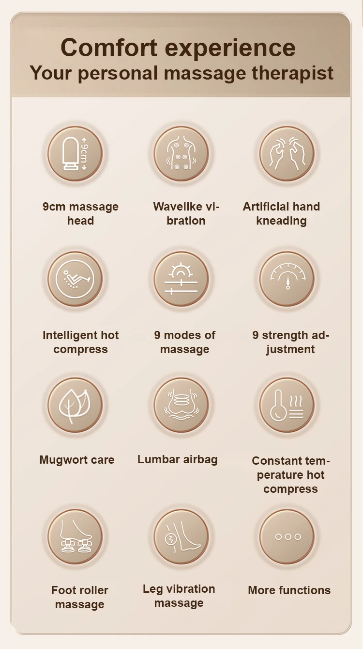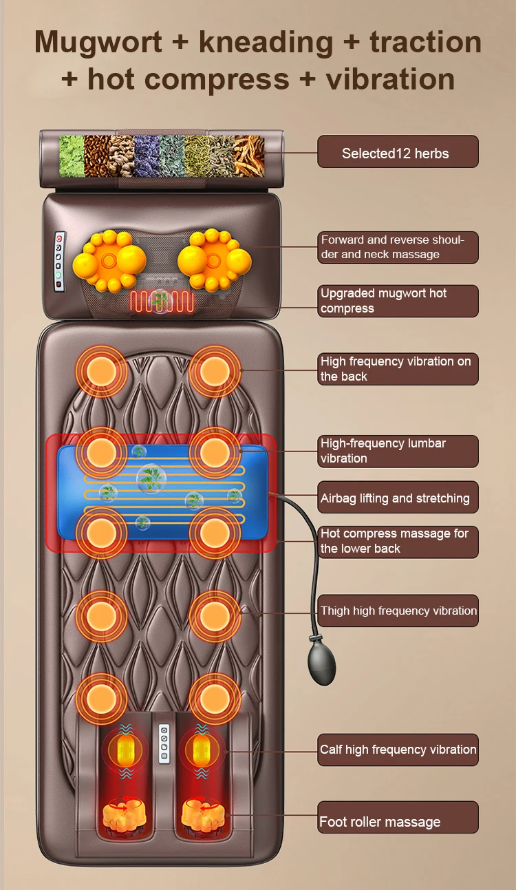 | Massage techniques | Vibration, hot compress, airbag, kneading |