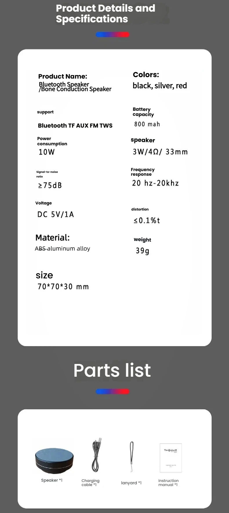 Available in sleek black, silver, and red, this speaker combines futuristic tech with a minimalist design that looks great anywhere.