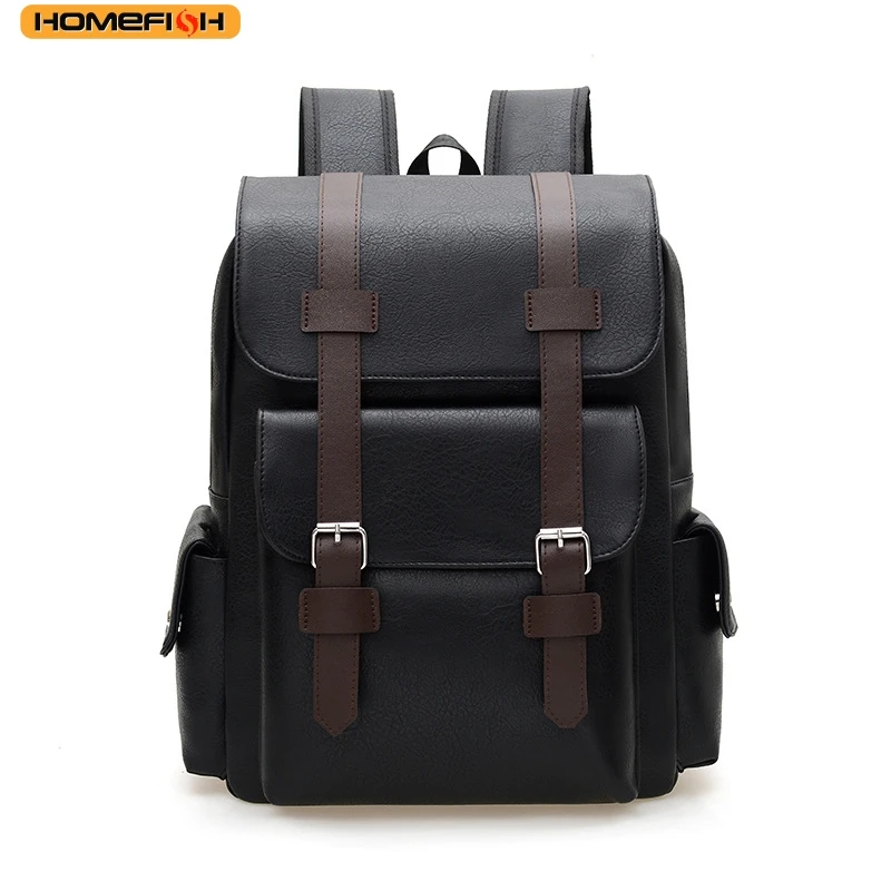 HOMEFISH Men Backpack PU Leather Bagpack Large Laptop Backpacks Male Mochilas Black Schoolbag For Teenagers Boys Brown Sac A Dos