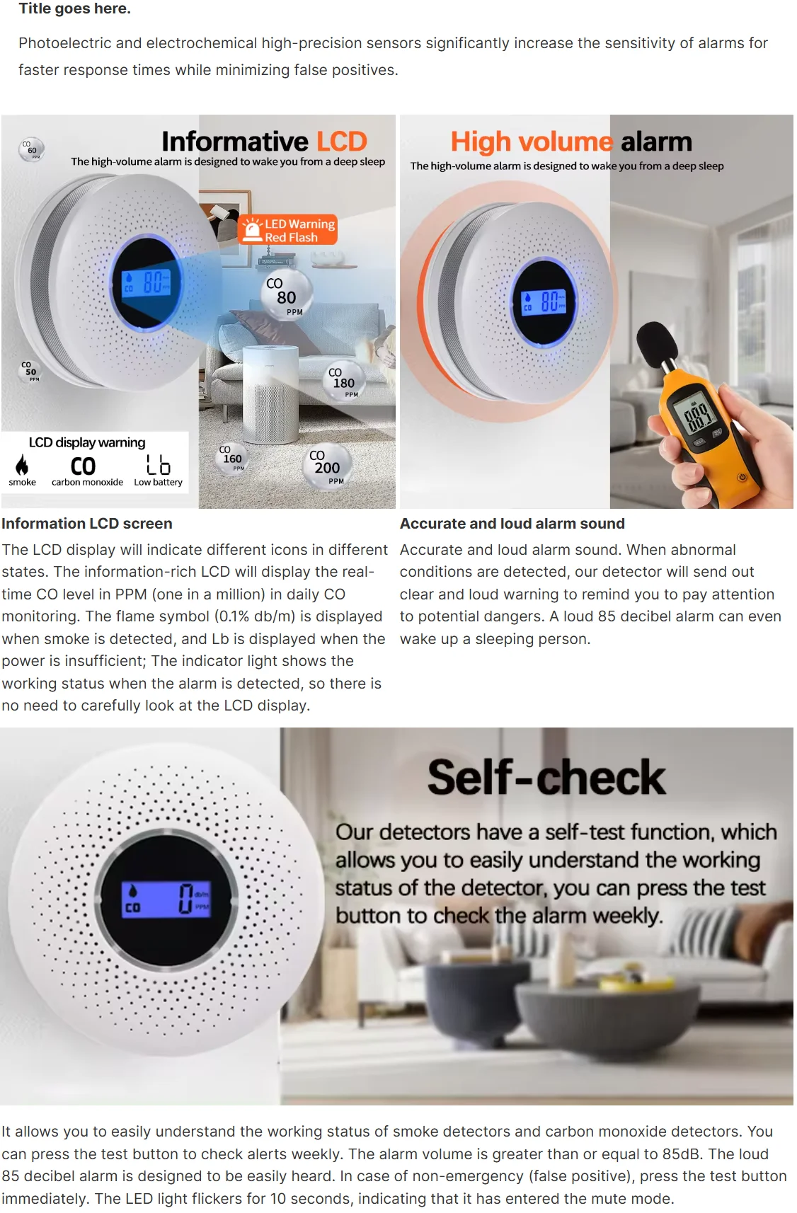 Combining photoelectric smoke and carbon monoxide detection in one device can sensitively detect these two threats.