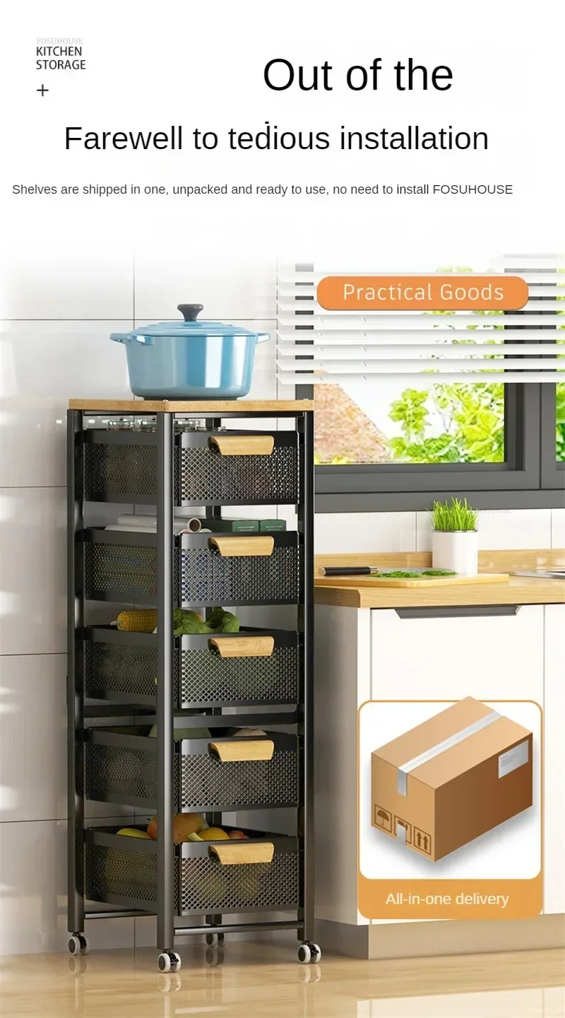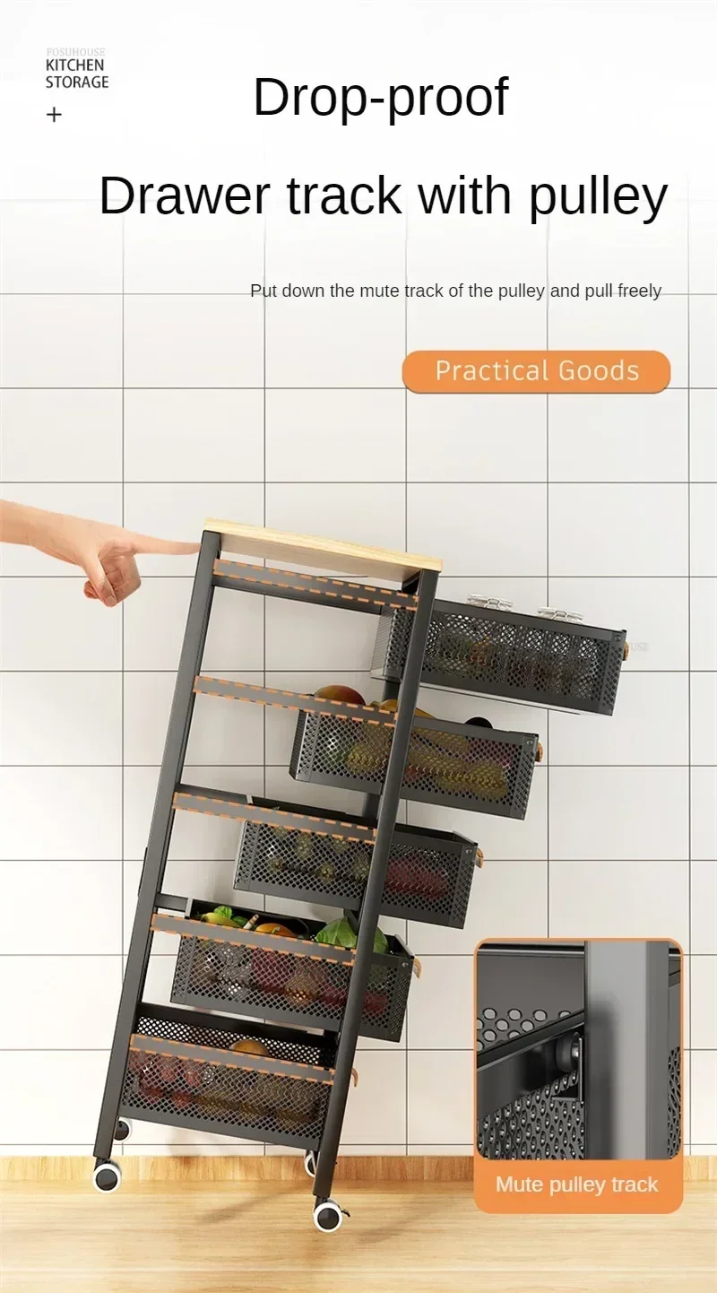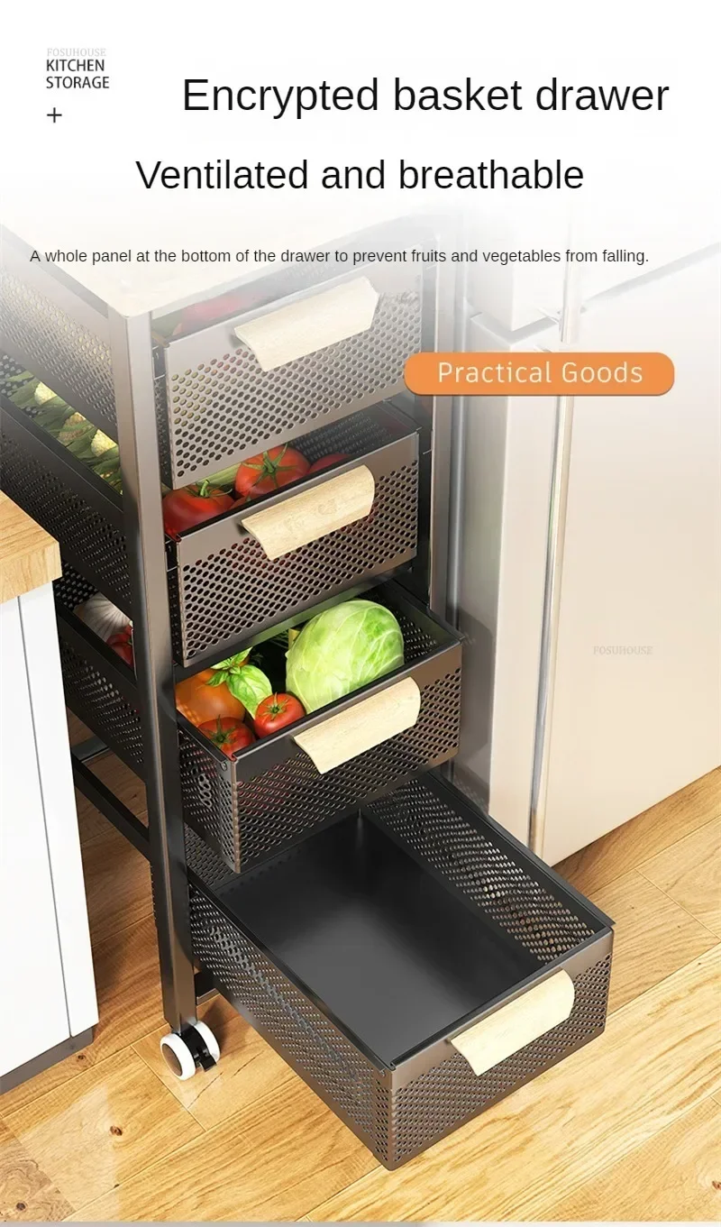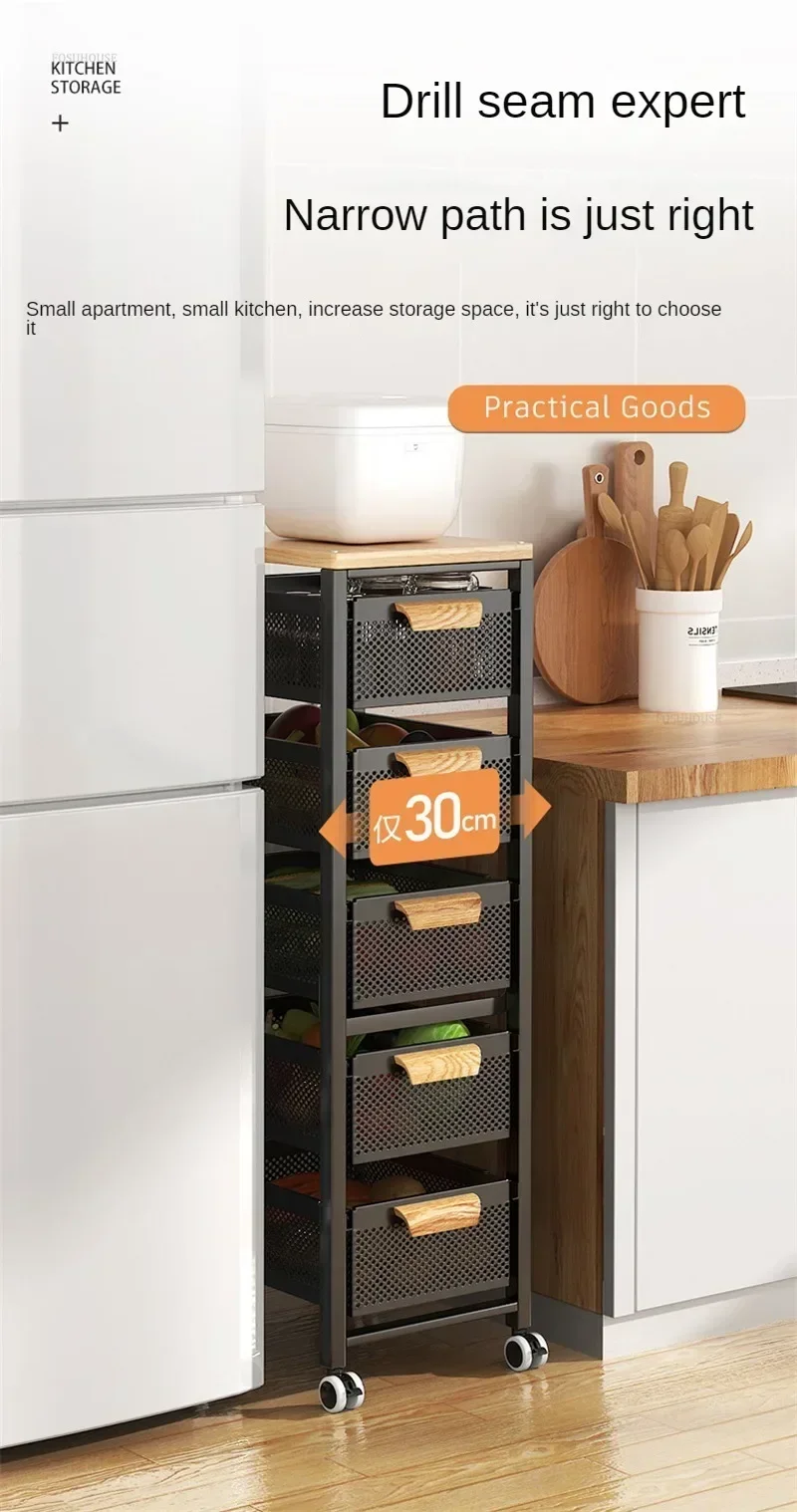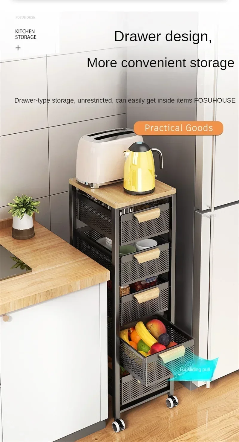 Drawer Type Kitchen Trolleys Multi-layer Vegetable Auxiliary Carts Household Movable Narrow Kitchen Organizer Cart with Wheels