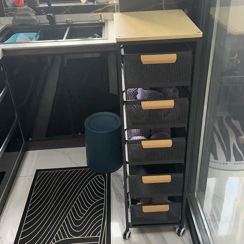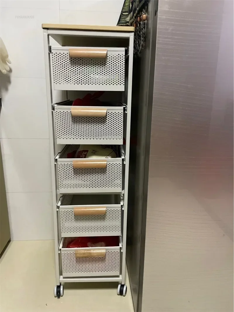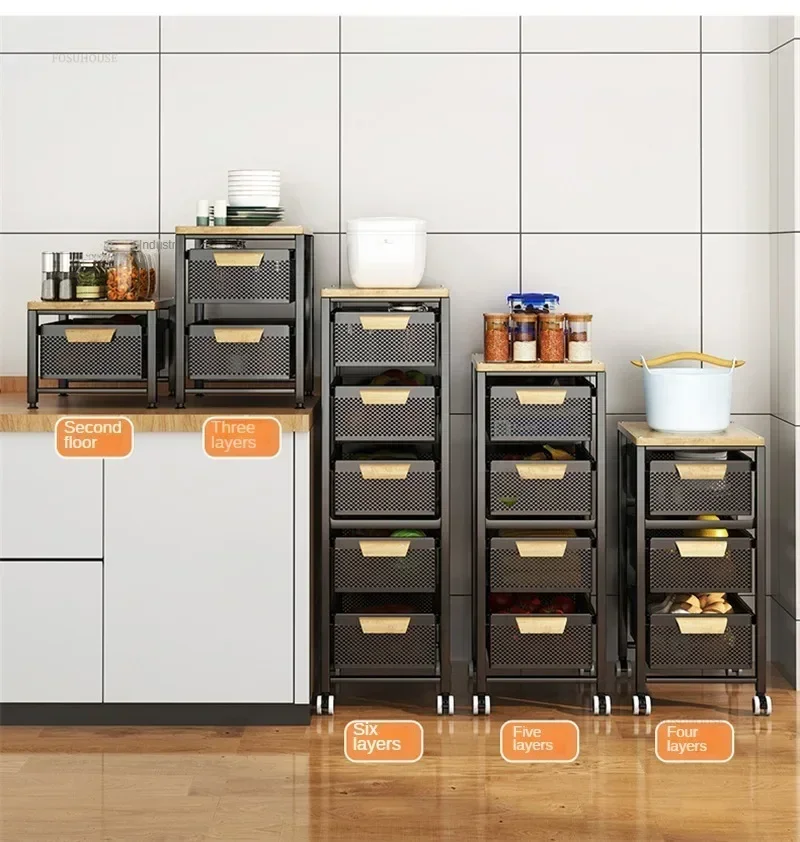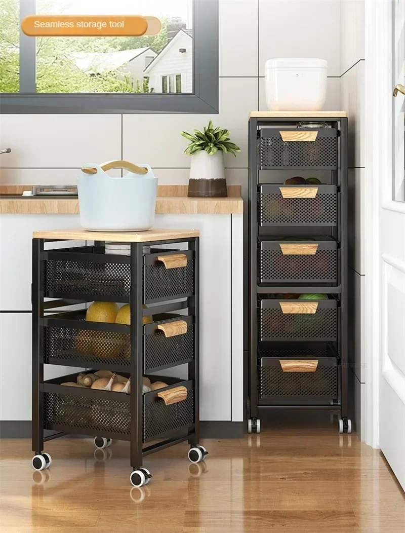 Household Movable Narrow Kitchen Organizer Cart With Wheel Multi-layer Vegetable Auxiliary Cartss Drawer Type Kitchen Trolleys