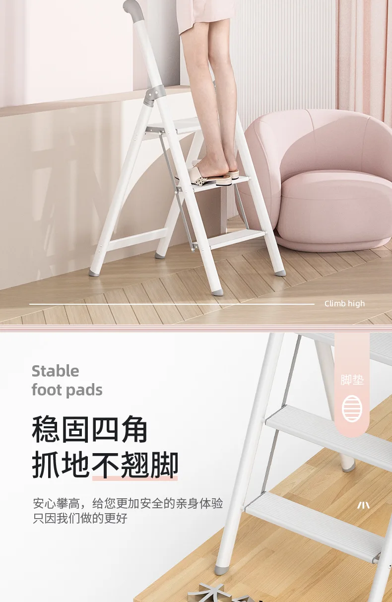 Household multi-functional folding telescopic ladder aluminum alloy three-step staircase portable small ladder stool