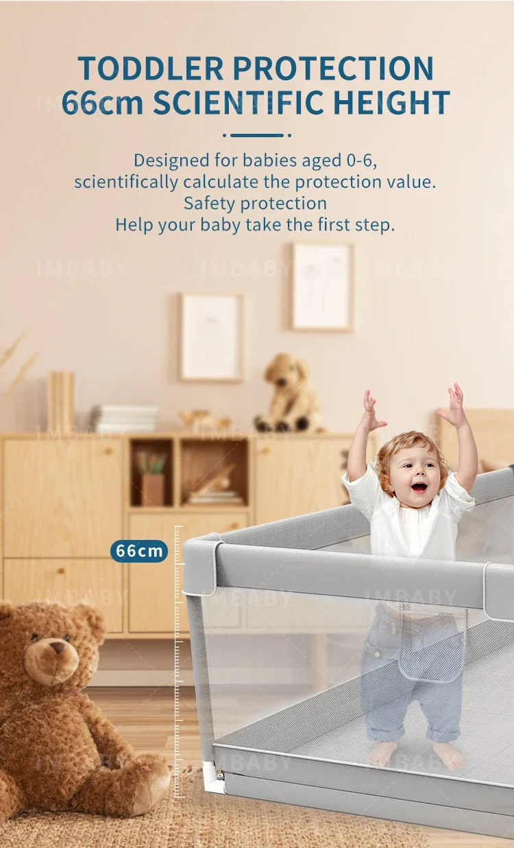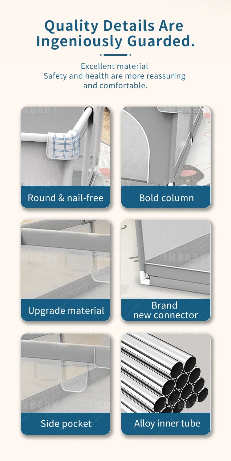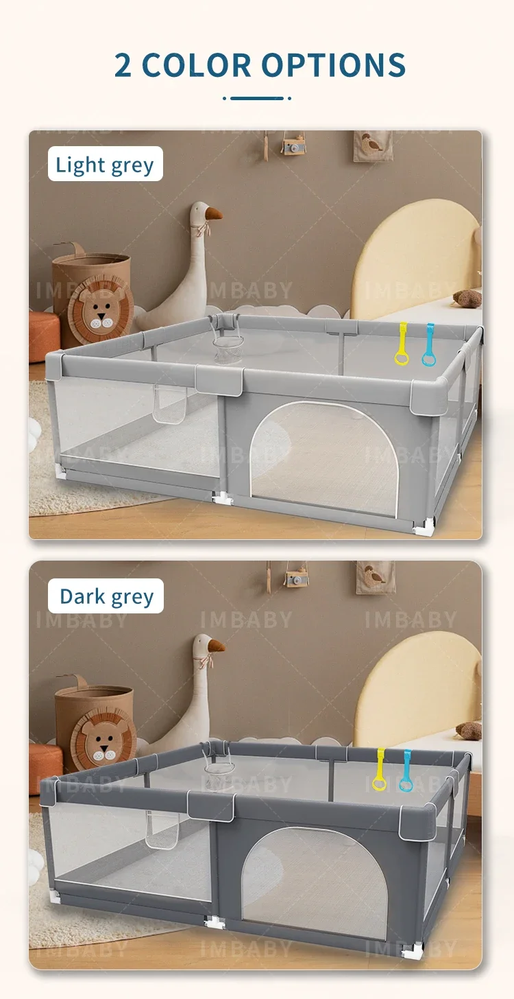 IMBABY Baby Playpen Gray Baby Corralitos Playpen for Children with Pull Ring Ball Box Toys Child Safety Barrier Fence Baby Gym