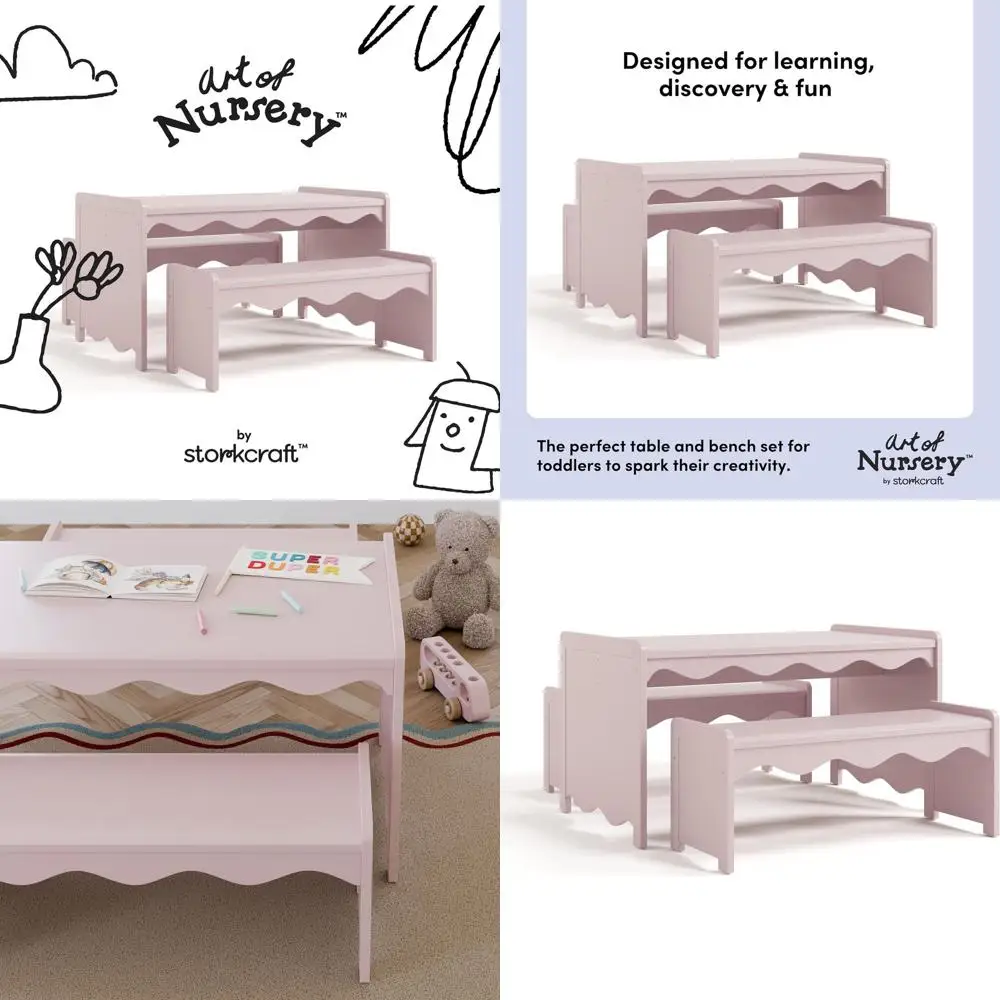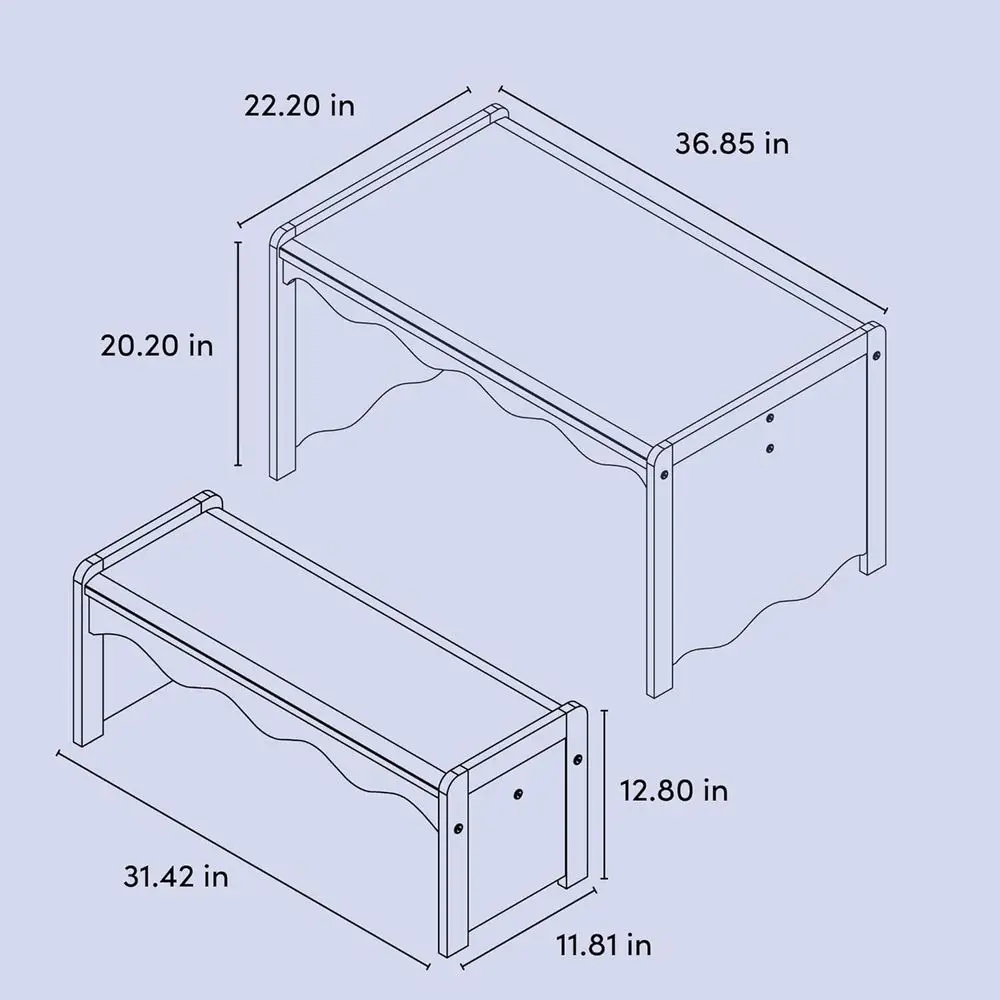 3-PIECE MONTESSORI KIDS ACTIVITY TABLE & BENCH SET — DESIGNED FOR LEARNING, DISCOVERY & FUN: Easy, 30-minute assembly; indoor use only; 3-piece set includes 2 benches and 1 table.