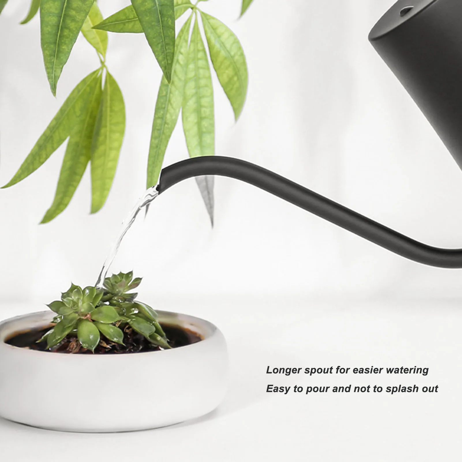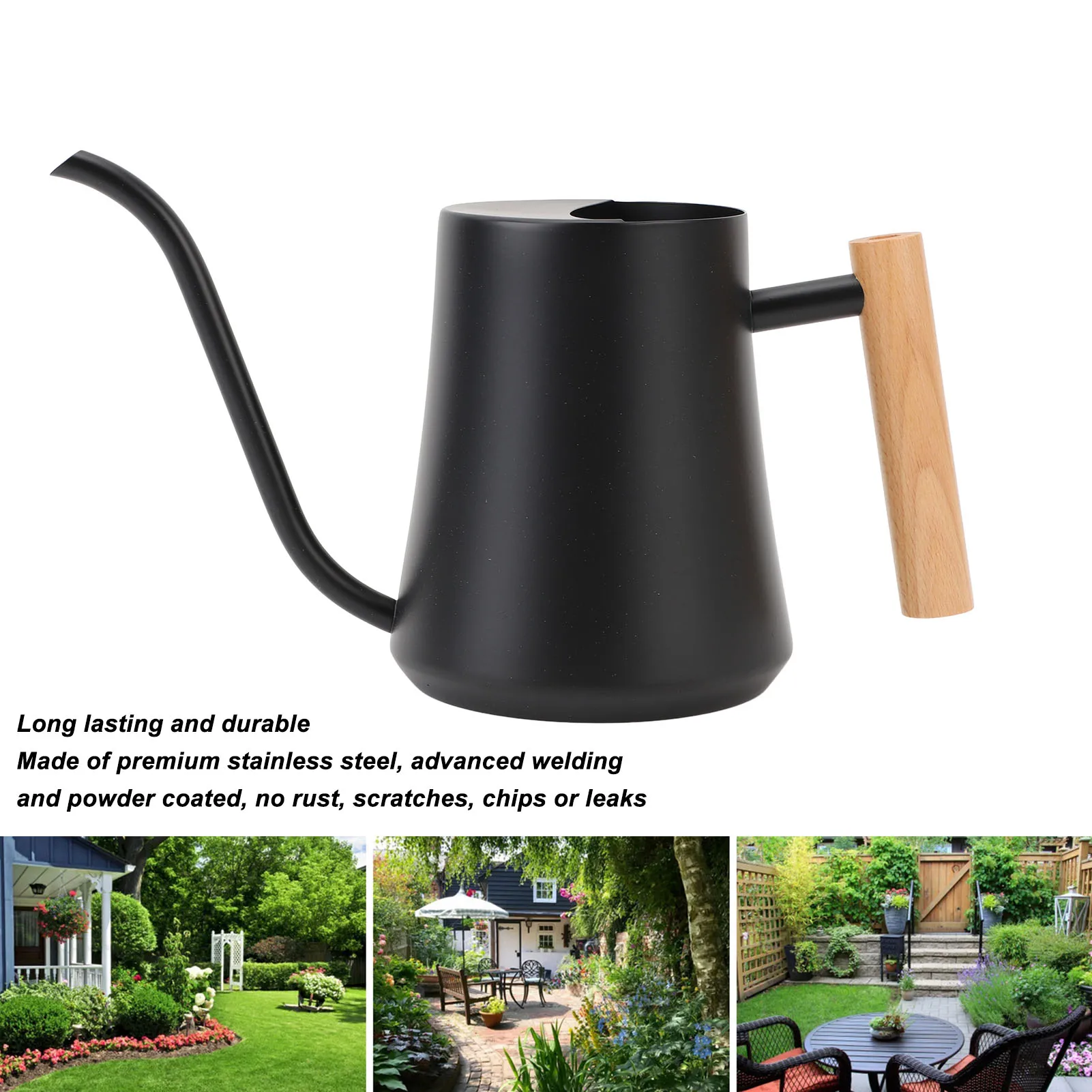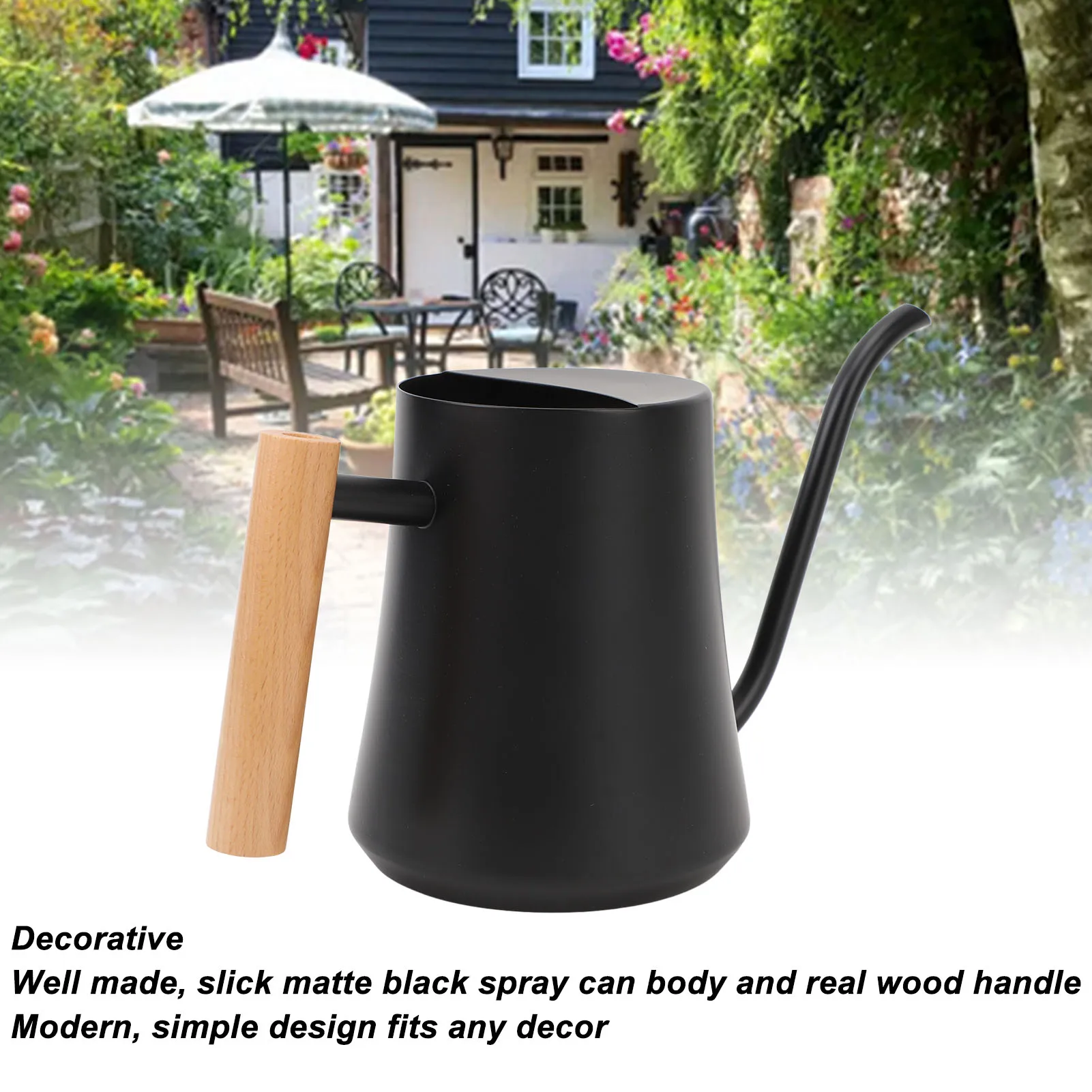5. DECORATIVE: The indoor watering can is finely crafted with a slick matte black spray can body and real wood handle, the modern, simple design fits any decor.