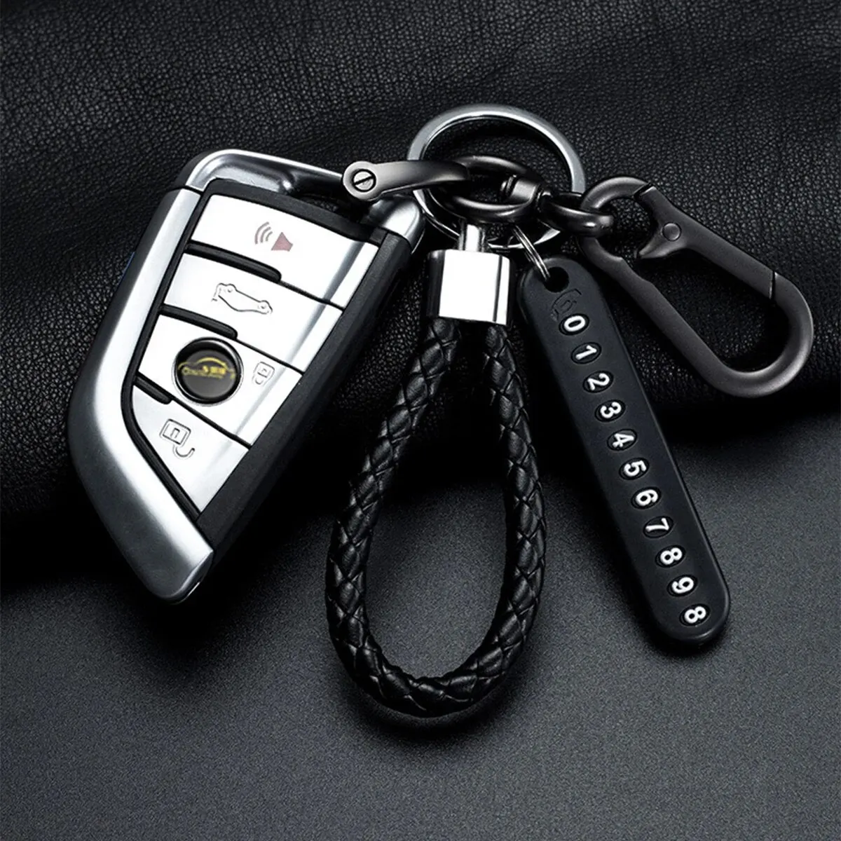 Ingemark Trendy DIY Mobile Phone Number Plate Pendant Keychain Men Punk Woven Leather Rope Anti-lost Car Key Chain Accessories
