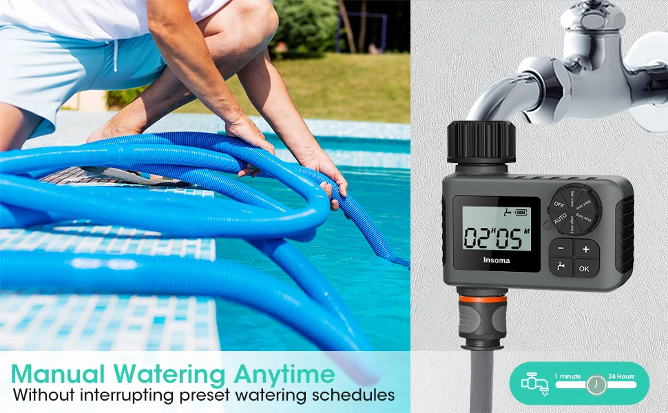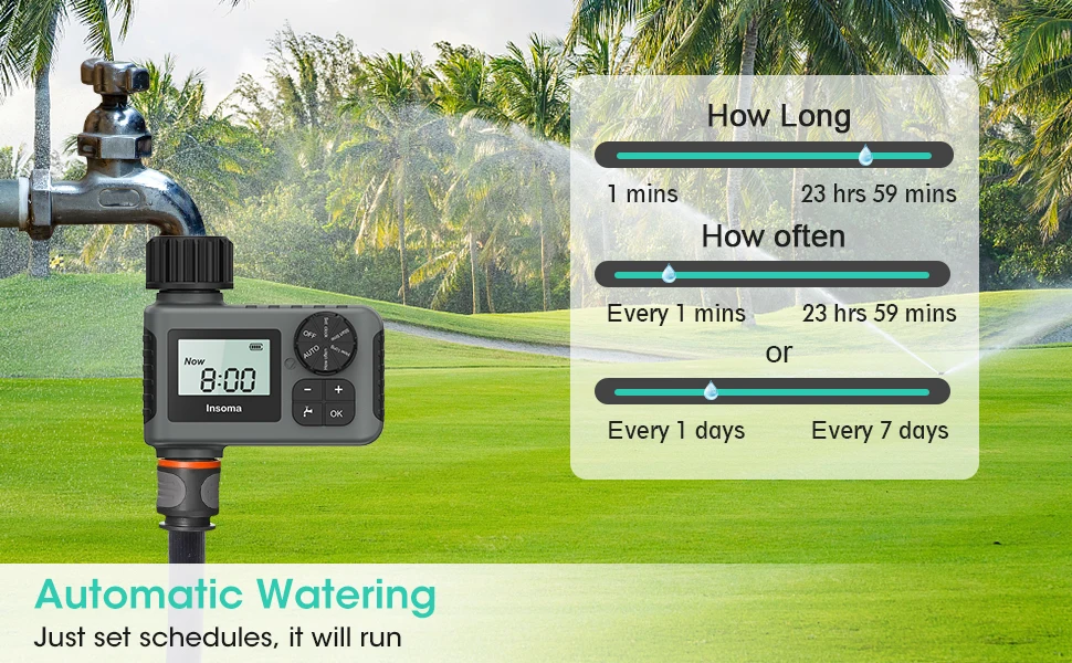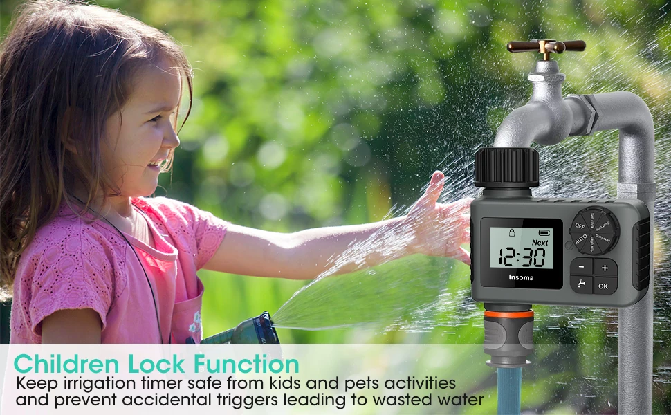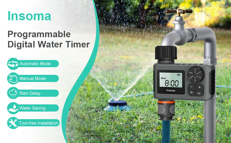 The INSOMA brand focuses on creating high-quality garden irrigation products. the garden irrigation system timer is deal for outdoor gravity drip irrigation system, garden irrigation watering, lawn sprinkler controller, greenhouse mist system, pool, etc.