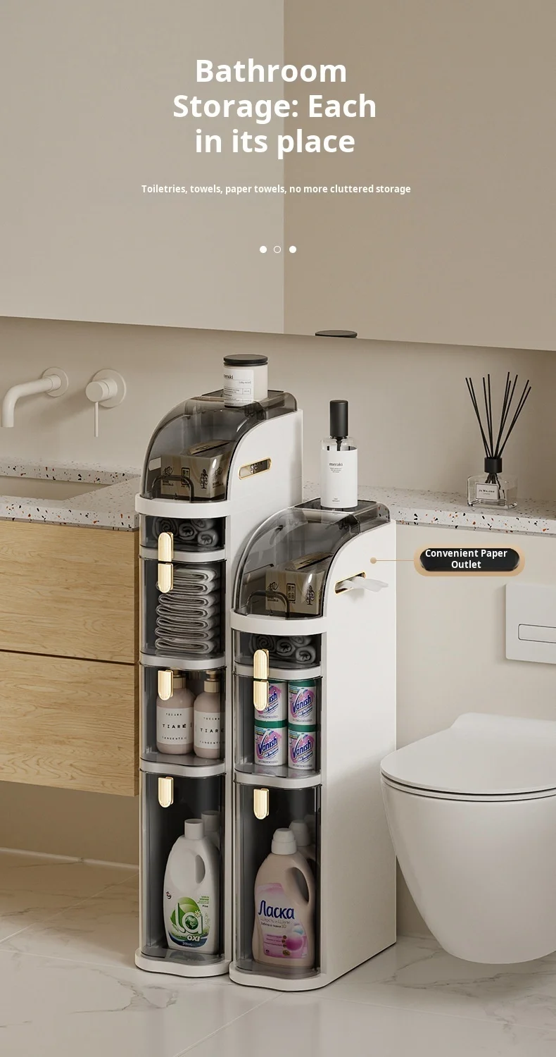 Installationfree narrow gap bathroom storage cabinet With Waterproof Plastic Cover Organizer light luxury toilet storage rack