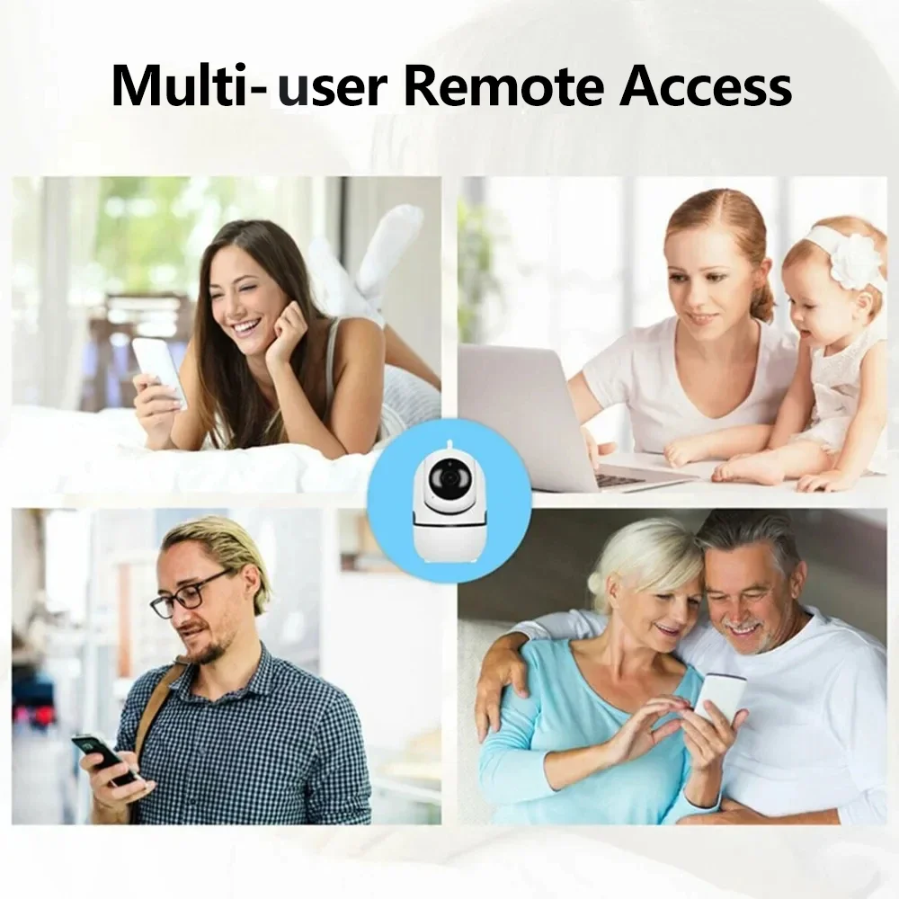 -360° Panorama Surveillance & Device Sharing: This security camera indoor wireless can track up to 355° pan and 120° tilt range to create a full 360° coverage for panoramic surveillance. And share your QR code with your family, you can watch the situation at home together.