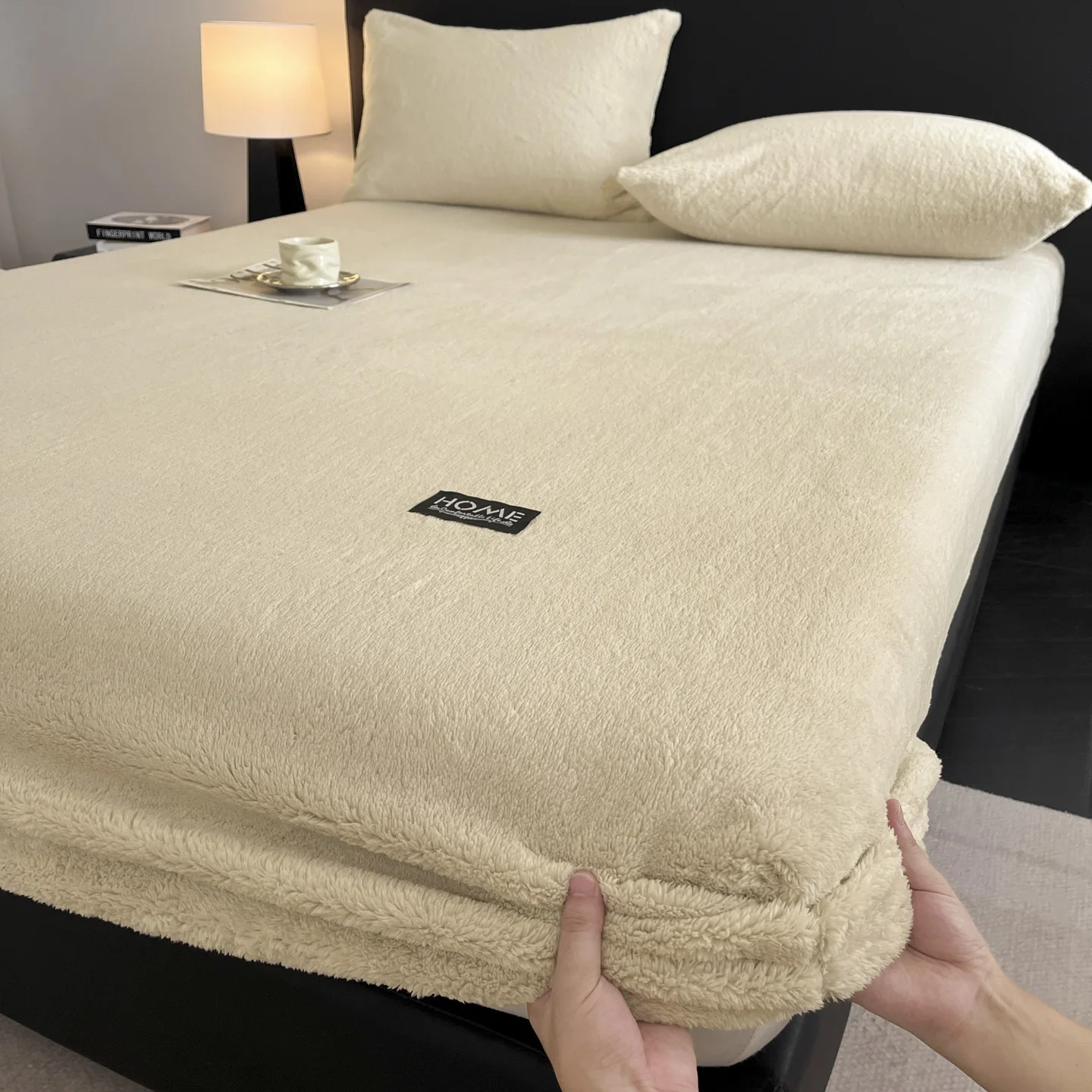Jacquard Winter Thick Warm Coral Plush Mattress Cover High Elasticity Anti-Slip Breathable Suitable Bedroom Soft Bed Sheet