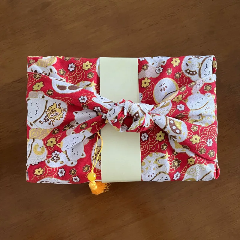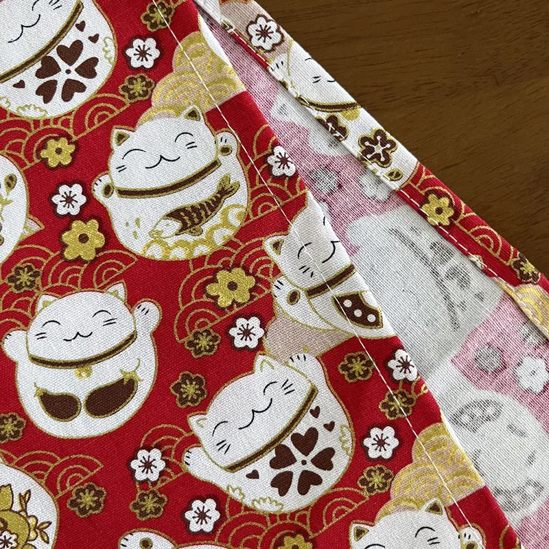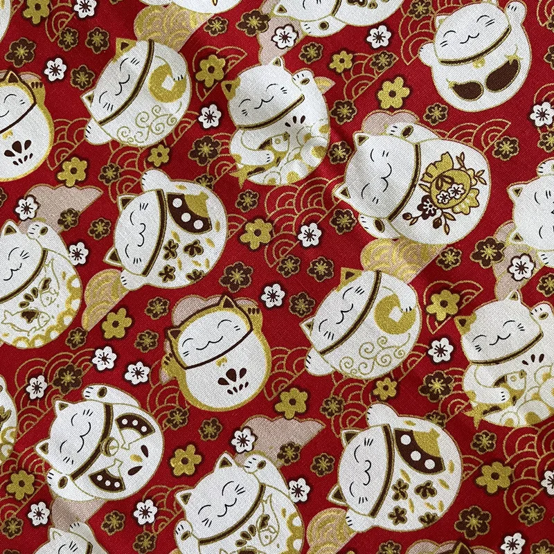 a cotton broadcloth, a little coarse, adorable maneki pattern