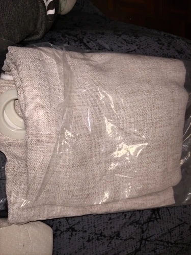 Very pleasantly surprised by this curtain. A beautiful warm beige colour, a kind of warm mushroom. It will match most decor. It’s lightweight yet almost opaque. I’m using it with a pole at the top of our stairs. Great!