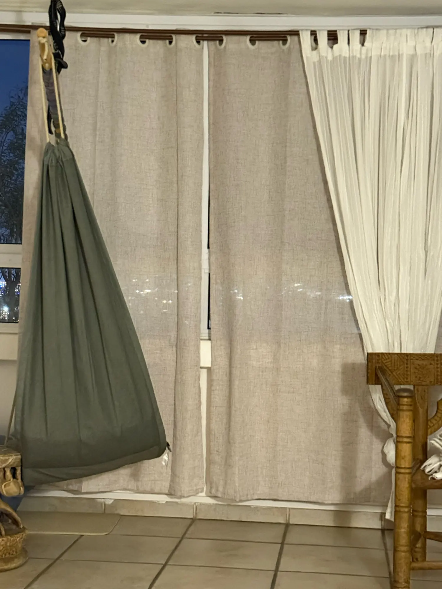 I really liked these curtains, they are not long… not very wide, they have a color that leans more towards nude… very pretty.