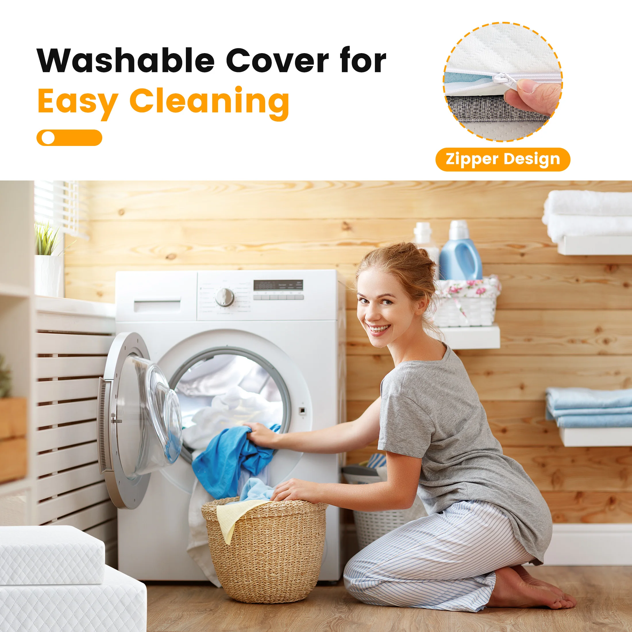 【Memory Foam Topper】 Our mattress topper comes enriched with high-density memory foam. Sure to provide an ideal level of softness and firmness, the topper contours perfectly to your body's shape, ensuring dreamy comfort and optimal pressure relief.