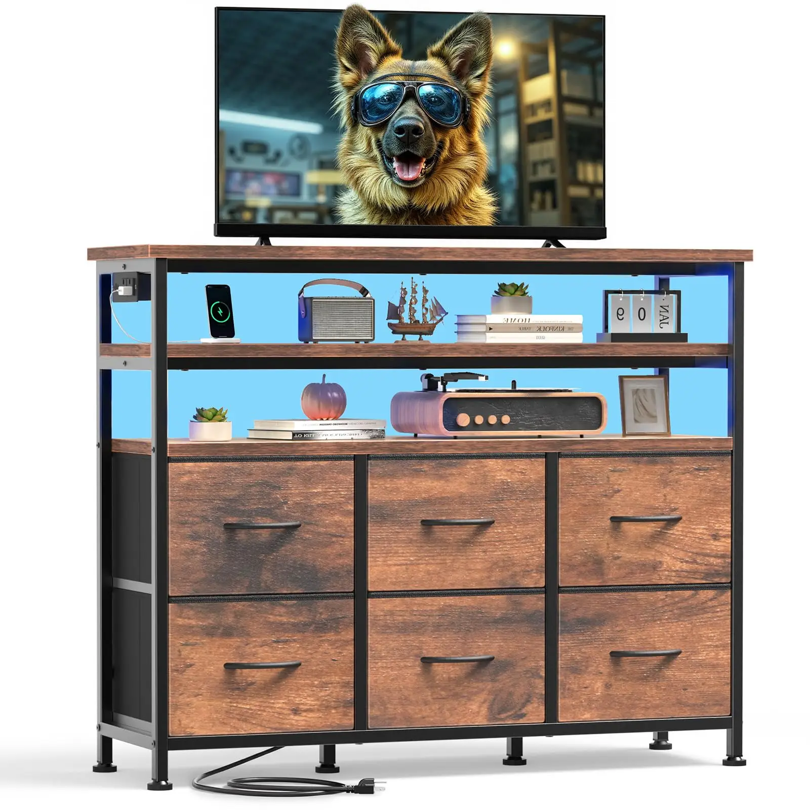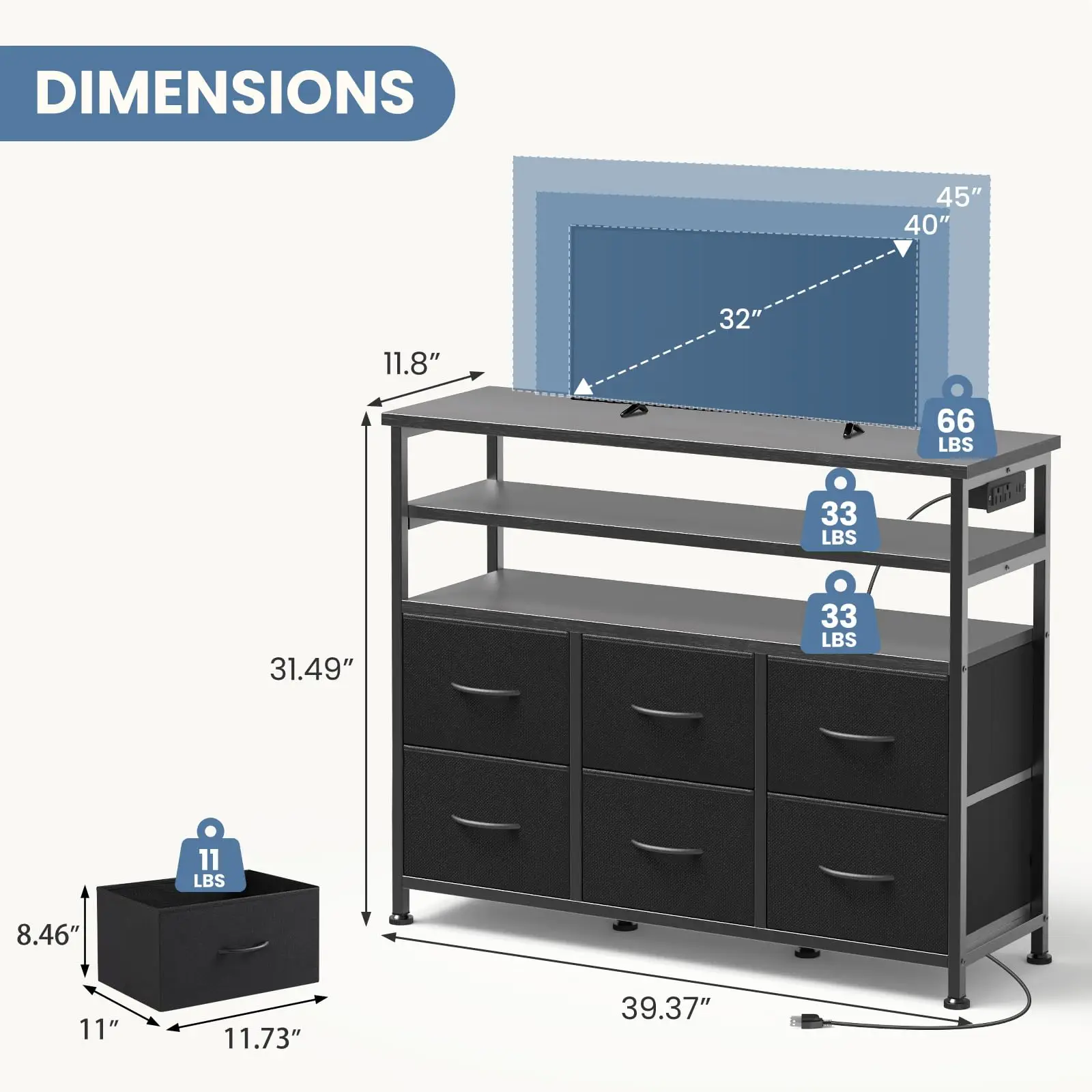JHK TV Stand Dresser For Living Room With 6 Fabric Drawers Storage Up to 45 inch TV Wood Top TV Media Console Table Cabinet