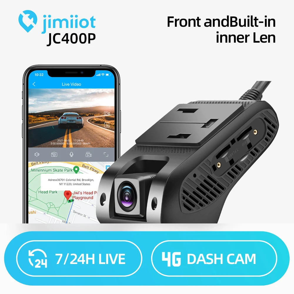 JIMIIOT 4G Dash Cams For Cars, JC400P 2 Live Video Vehicle Camera, Wifi Hotspot GPS Tracking DVR, Remote Monitor By APP, Dual Record