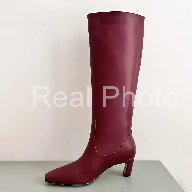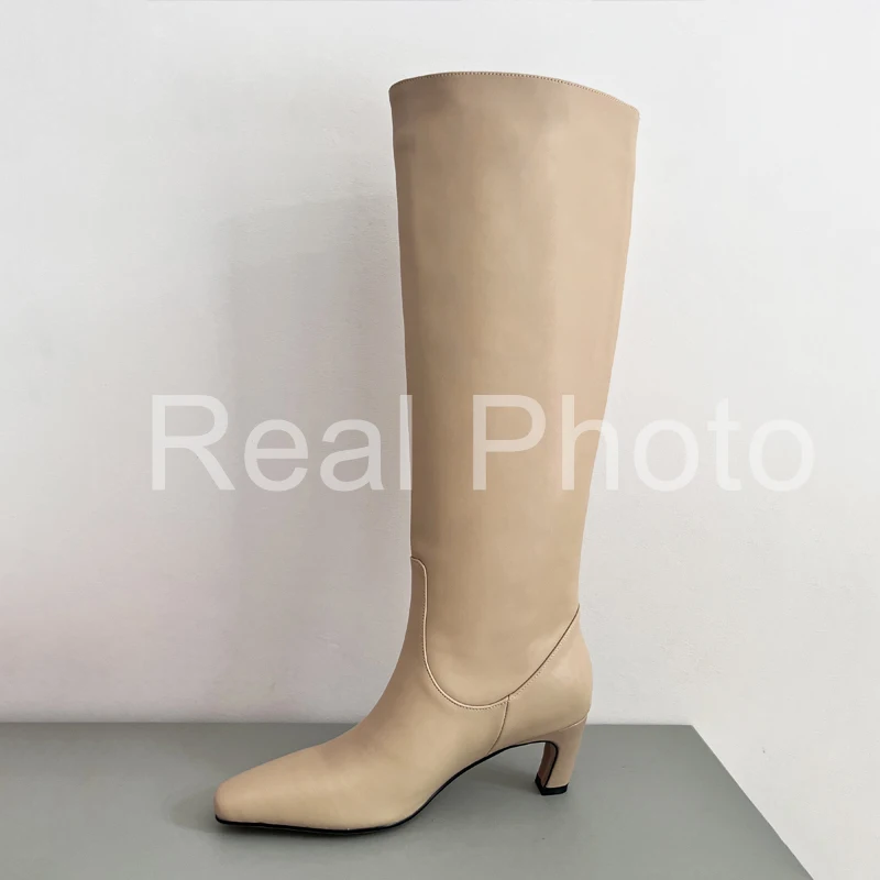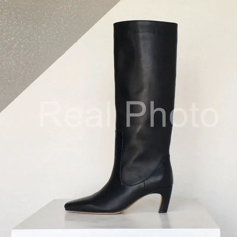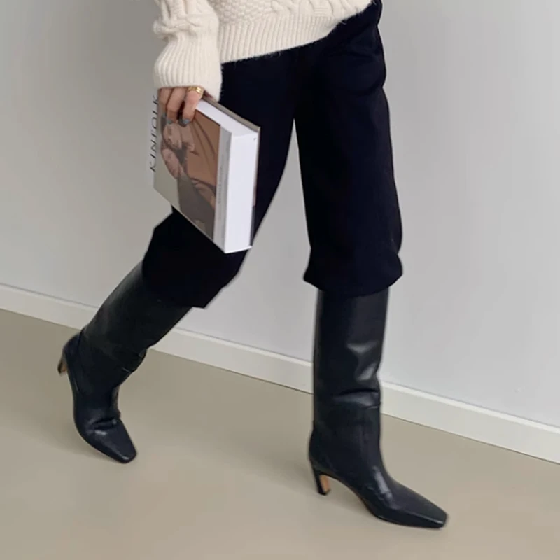 JOZHAMTA Size 34-43 Women Knee Boots Real Leather Wide Calf Fall Winter Shoes 2025 Kitten High Heels Long Tall Boot Casual Dress