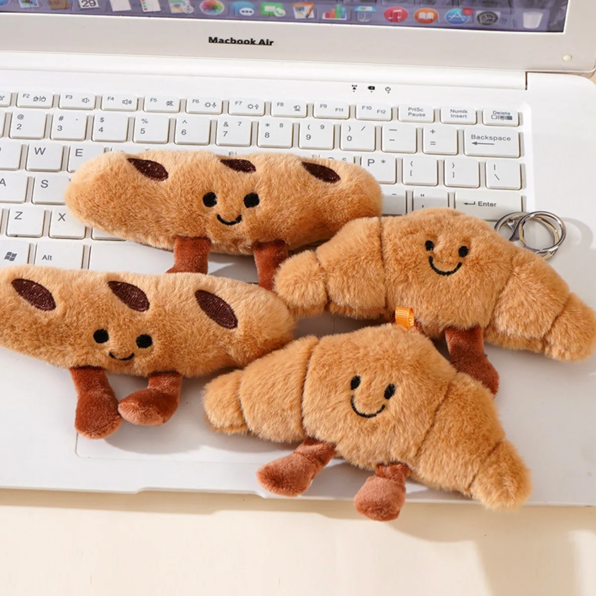 Kawaii Plush Keychain Cartoon Croissant Design for Car Keys Bag Charm Cute Girl Gift Pendant
