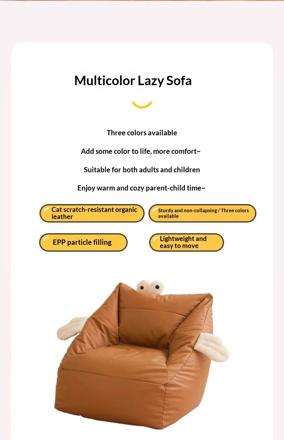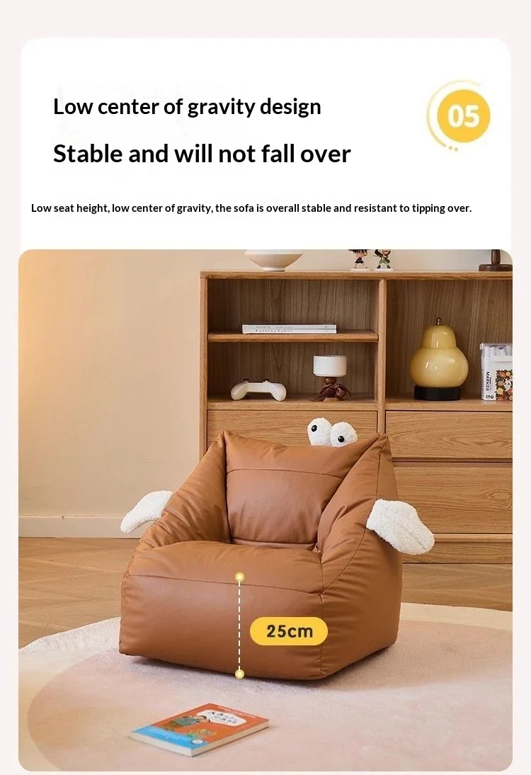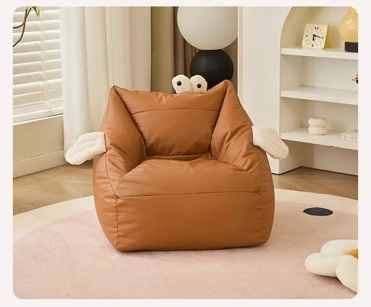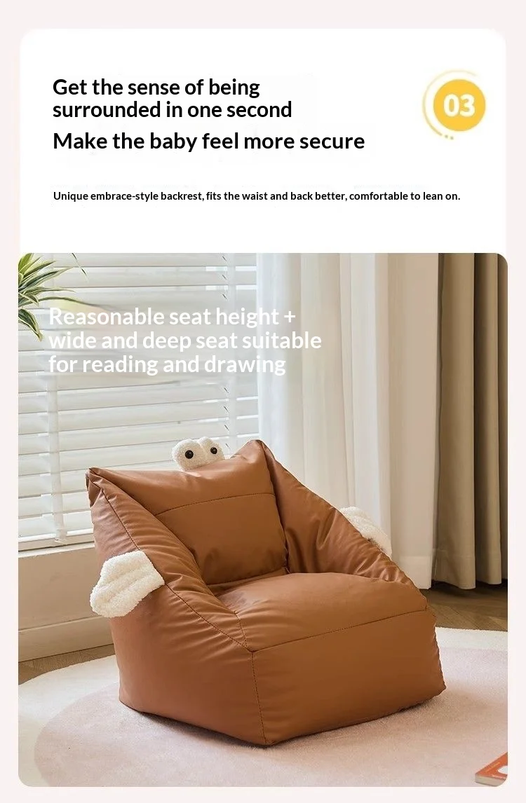 Kids Bean Bag Sofa Cute Playroom Reading Chair Baby Toddler Recliner Seat Soft Washable Removable Cover Brown White Orange