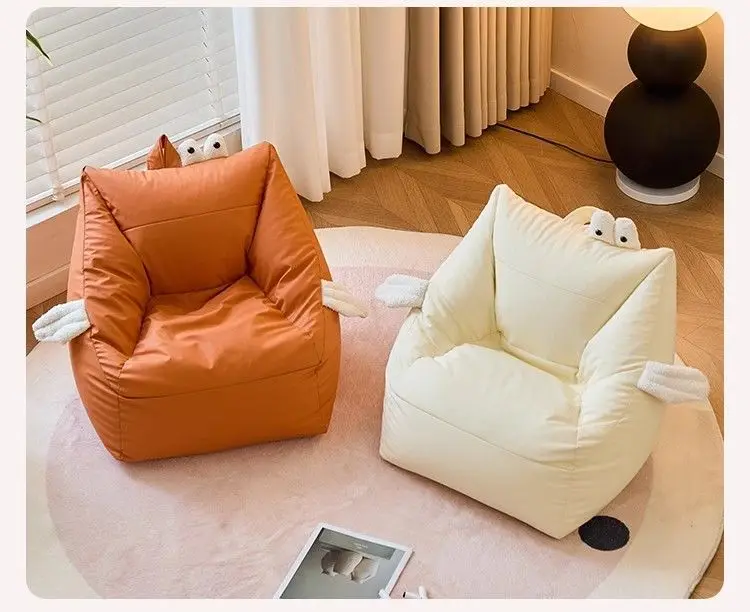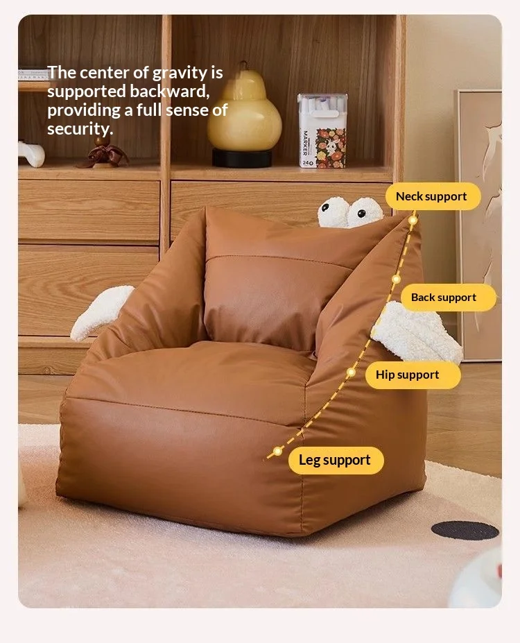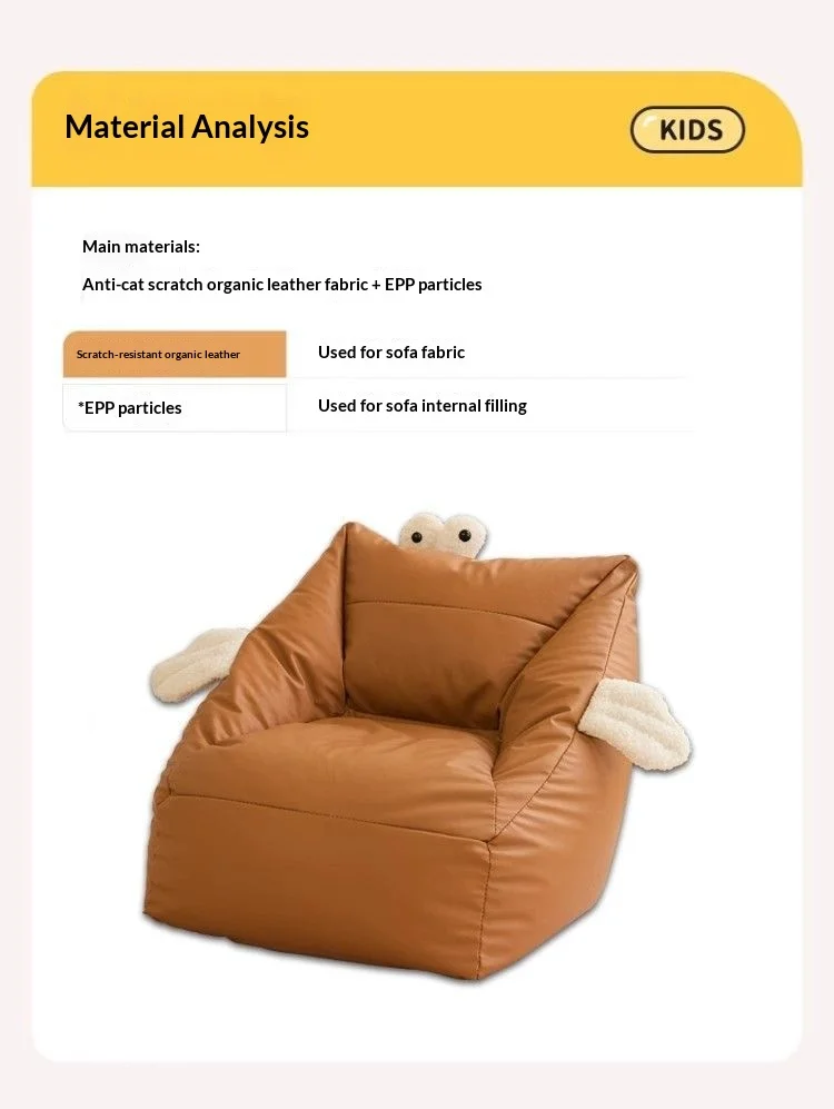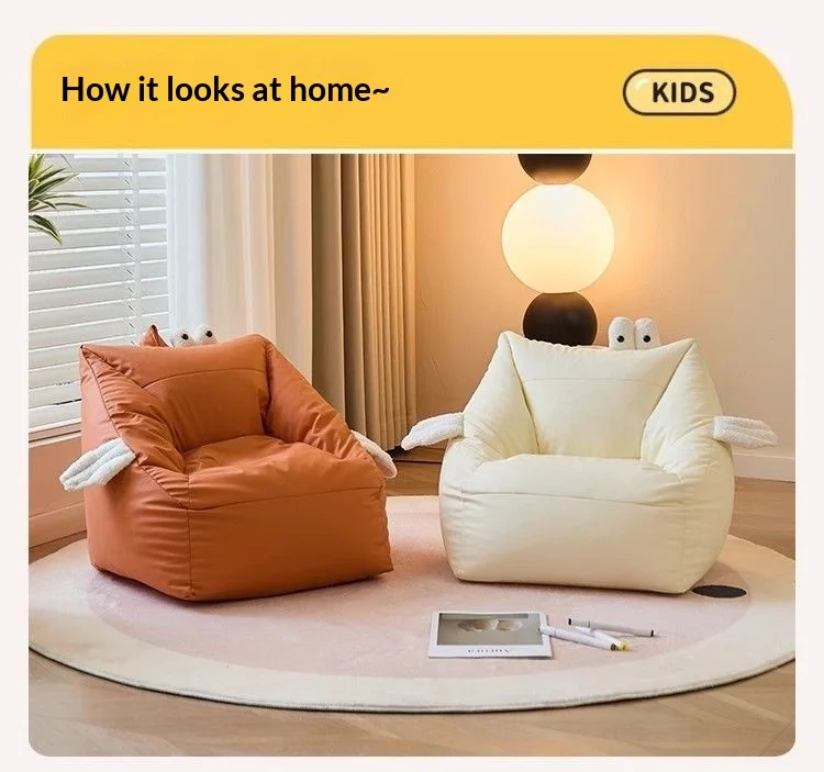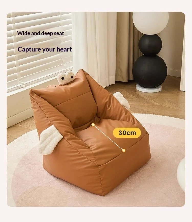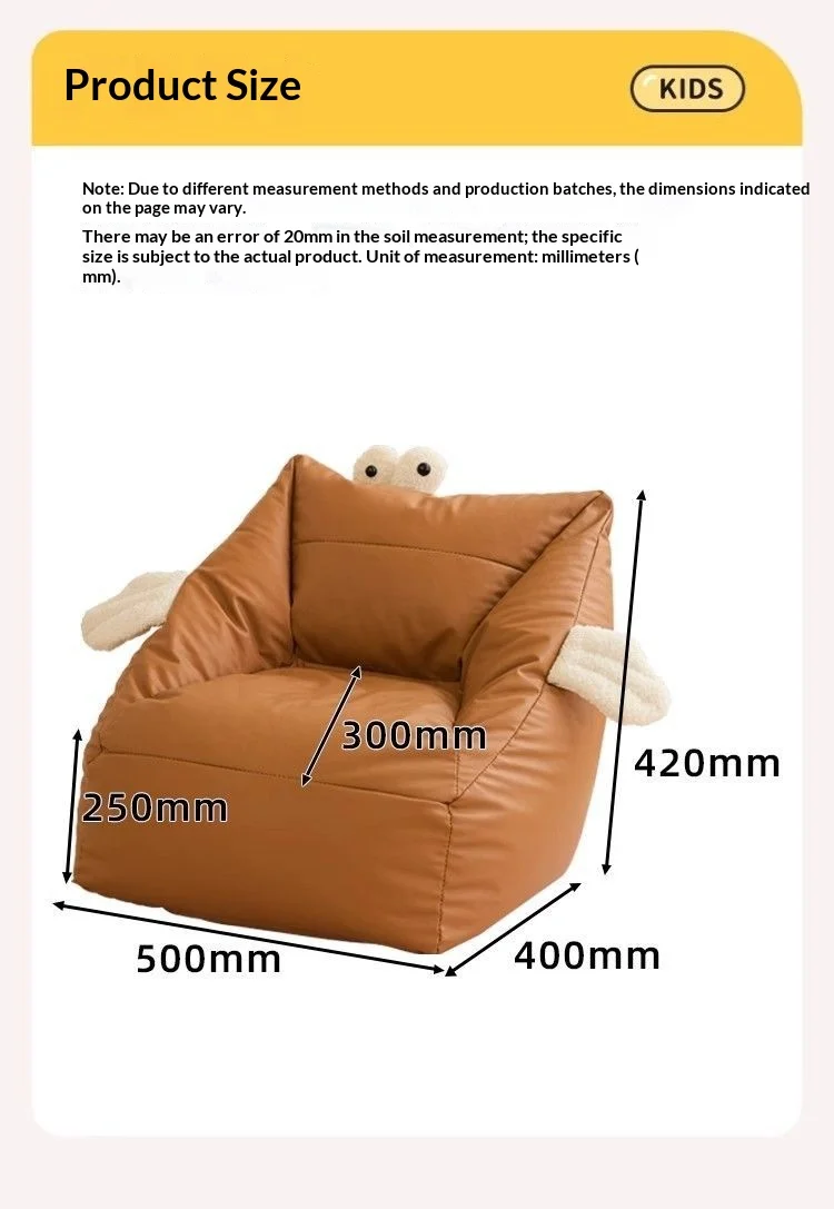Kids Bean Bag Sofa Cute Playroom Reading Chair Baby Toddler Recliner Seat Soft Washable Removable Cover Brown White Orange