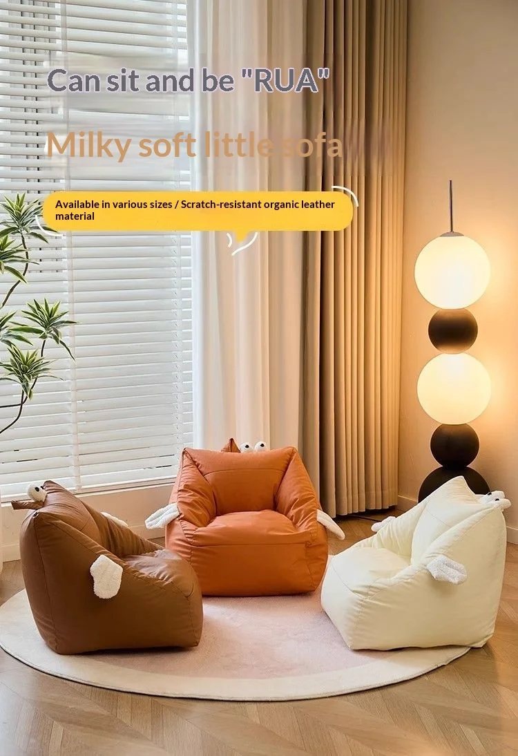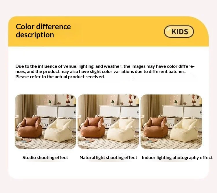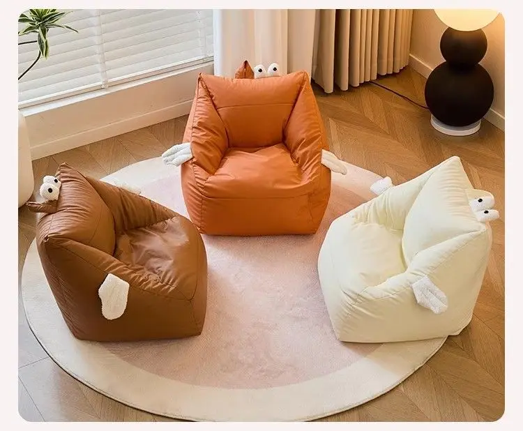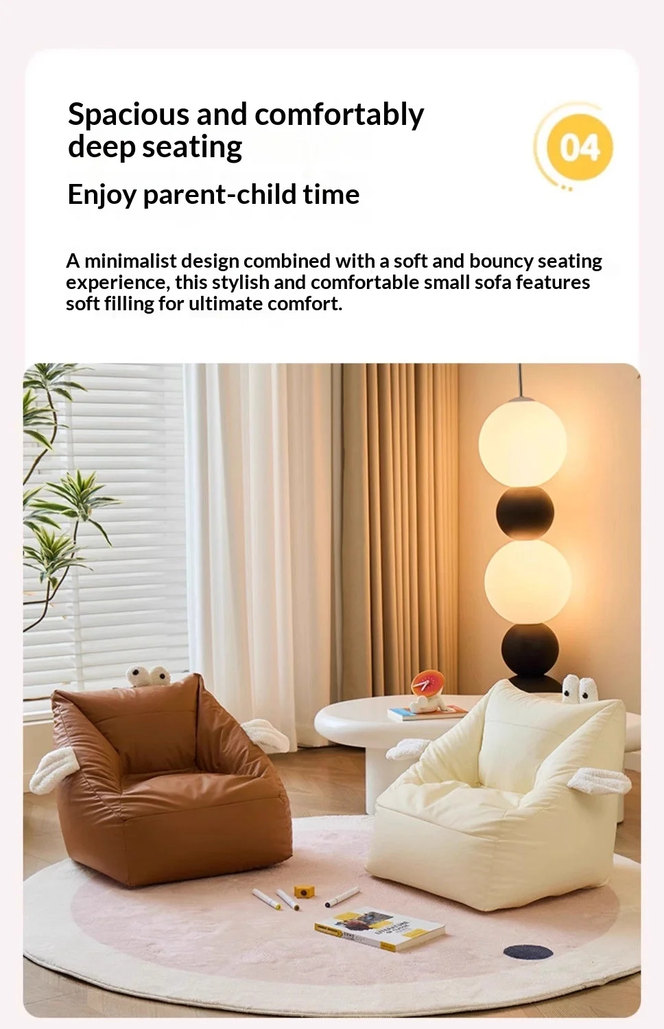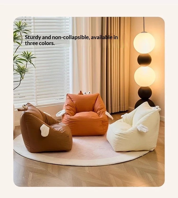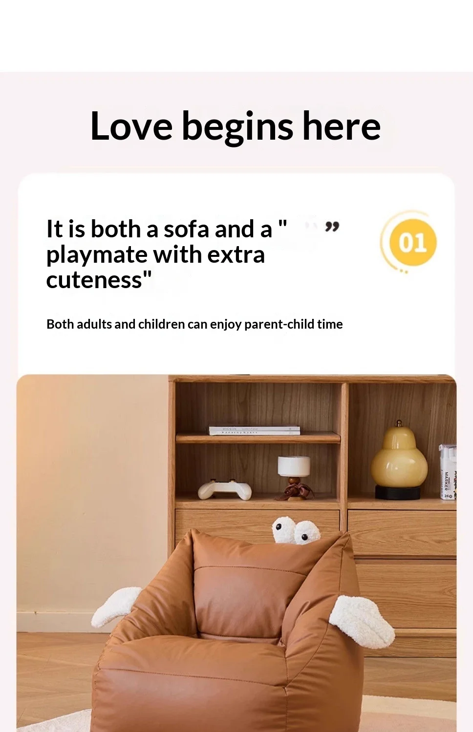 Kids Bean Bag Sofa Cute Playroom Reading Chair Baby Toddler Recliner Seat Soft Washable Removable Cover Brown White Orange