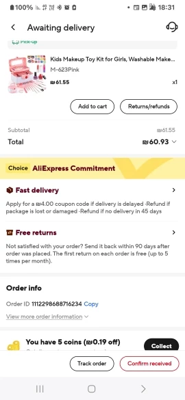 The order was received very quickly. The child really liked the cosmetics. I recommend it.