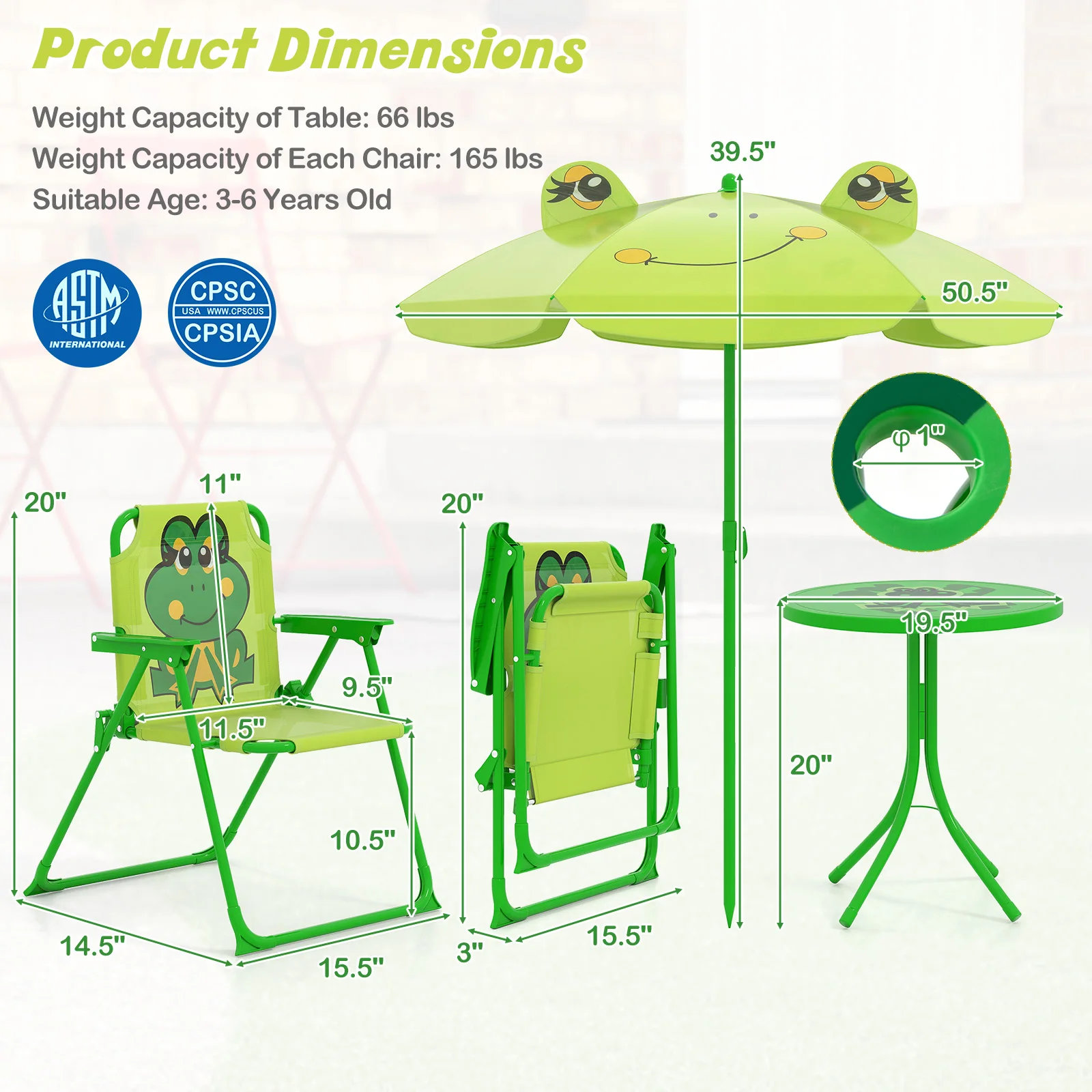 Kids Picnic Table & Chair Set with 2 Folding Chairs & Height Adjustable Umbrella