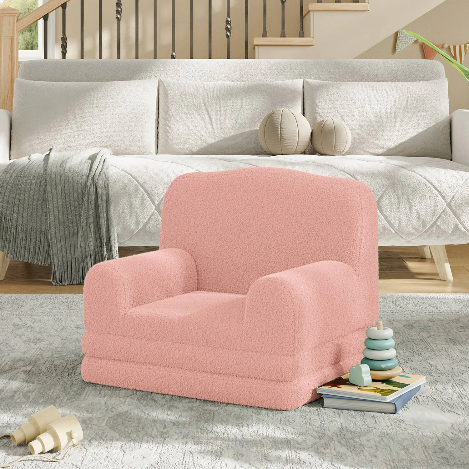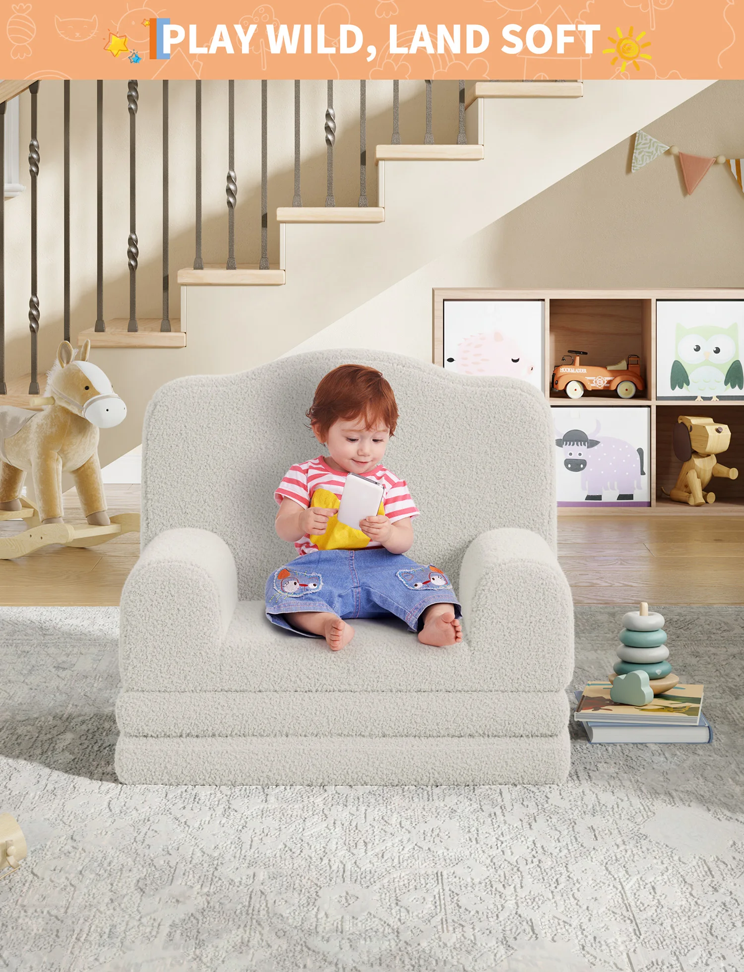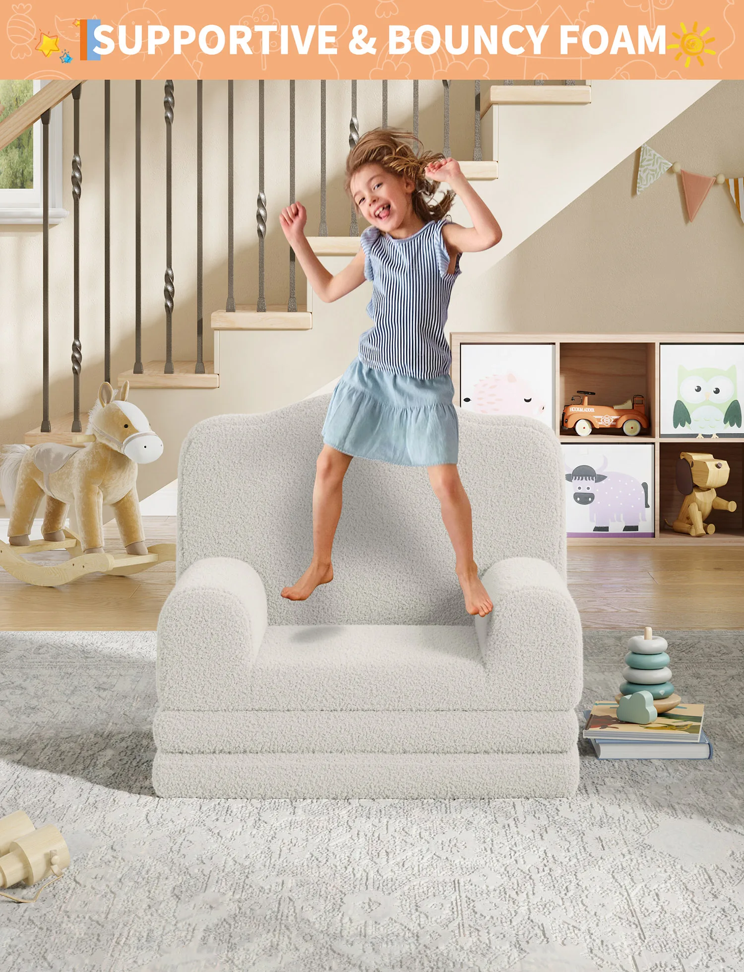 — Removable, Machine-Washable Cover: Soft, breathable, and skin-friendly Sherpa fabric cover is easy to remove and toss in the washing machine. The concealed zipper and anti-slip pad make this children's sofa both safe and practical for everyday adventures.