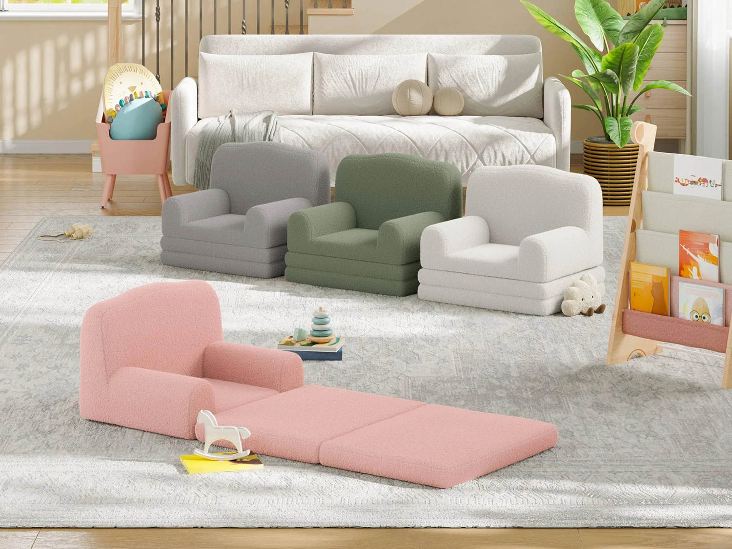 — Portable & Versatile for Any Space: Lightweight and easy to move, this convertible kids sofa is great for the living room, nursery, bedroom, or playroom. Take it camping, to grandma's house, or use it as a comfy floor chair—kids' comfort on the go.