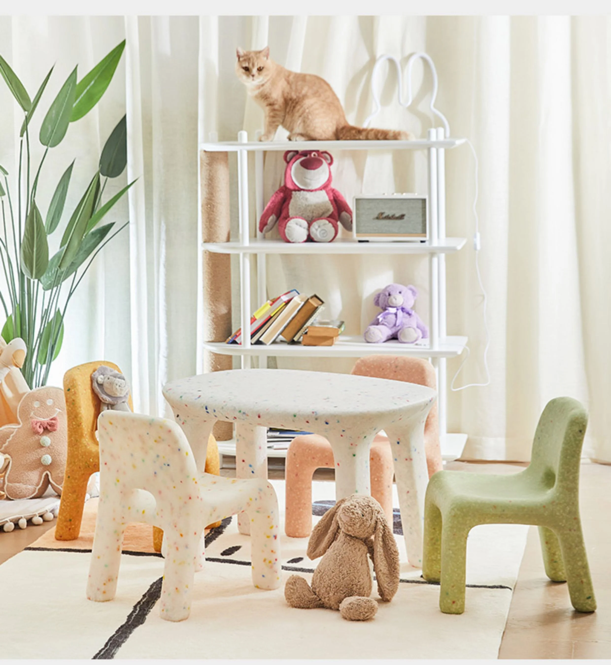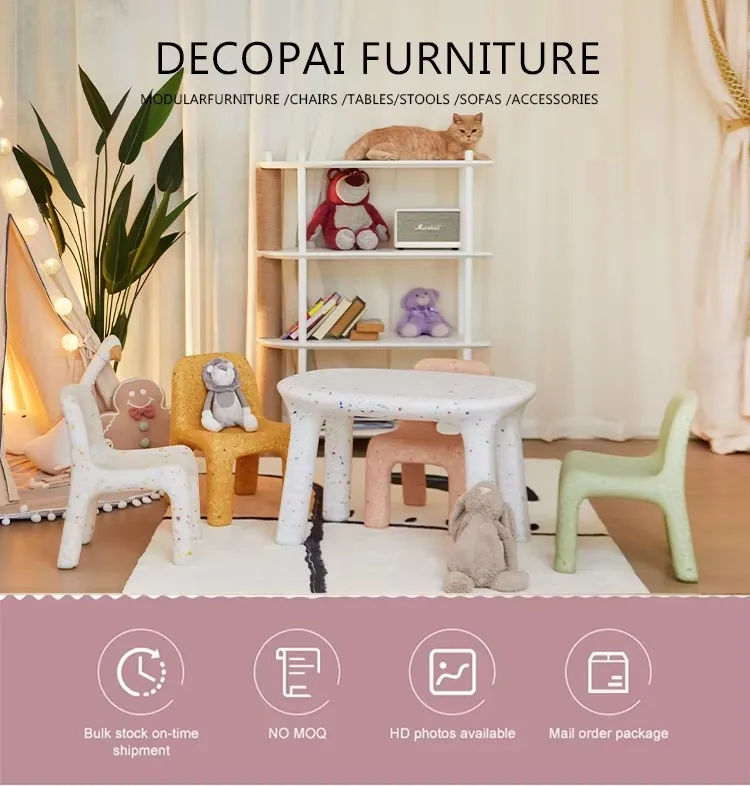 Kids Study Table And Chairs Set Backrest Cute Low Stool Small Kindergarten Outdoor Plastic Strong Durable Table Furniture Set