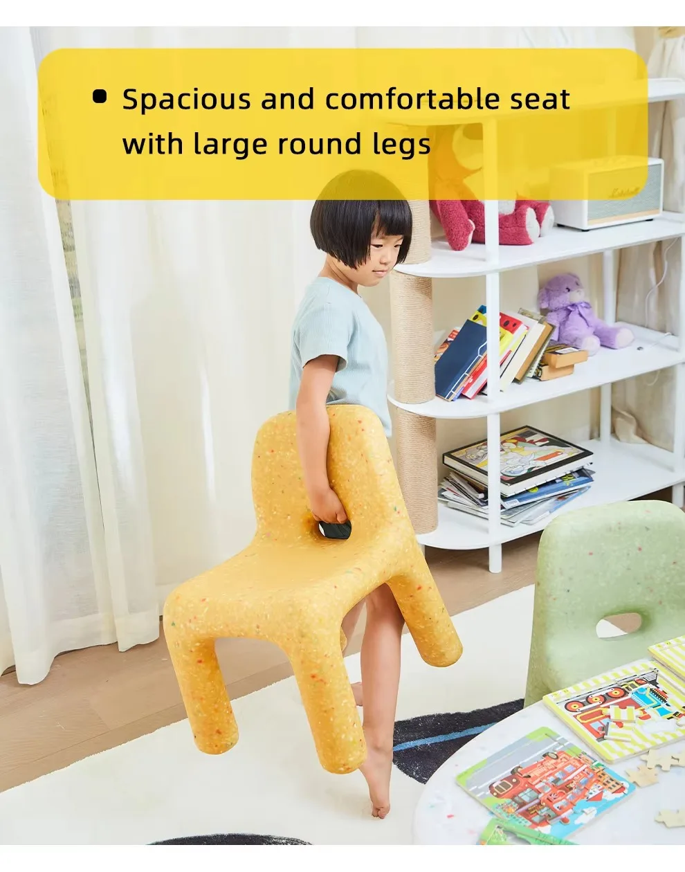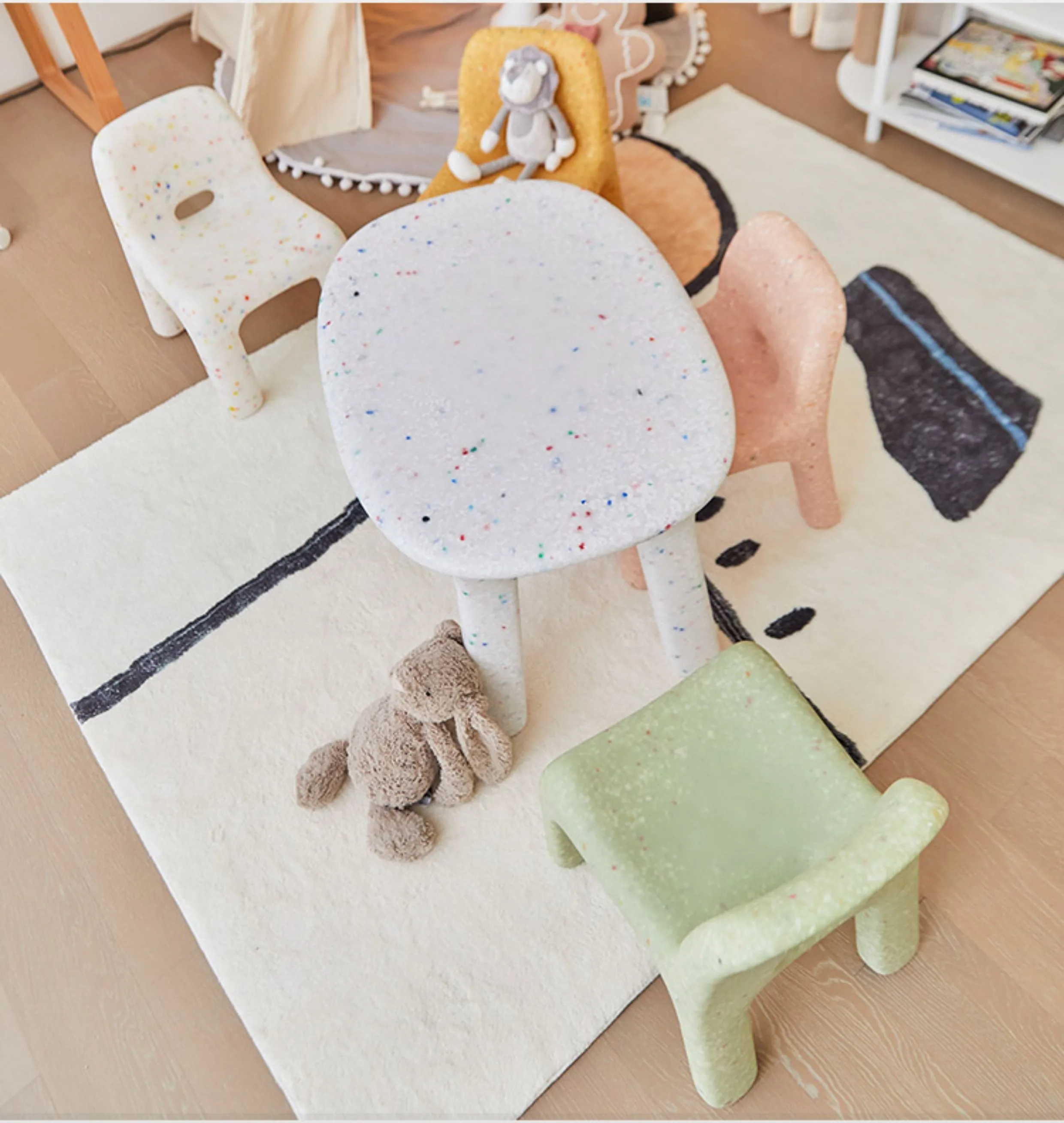 The colors are bright and fun. It really brightens up the playroom.