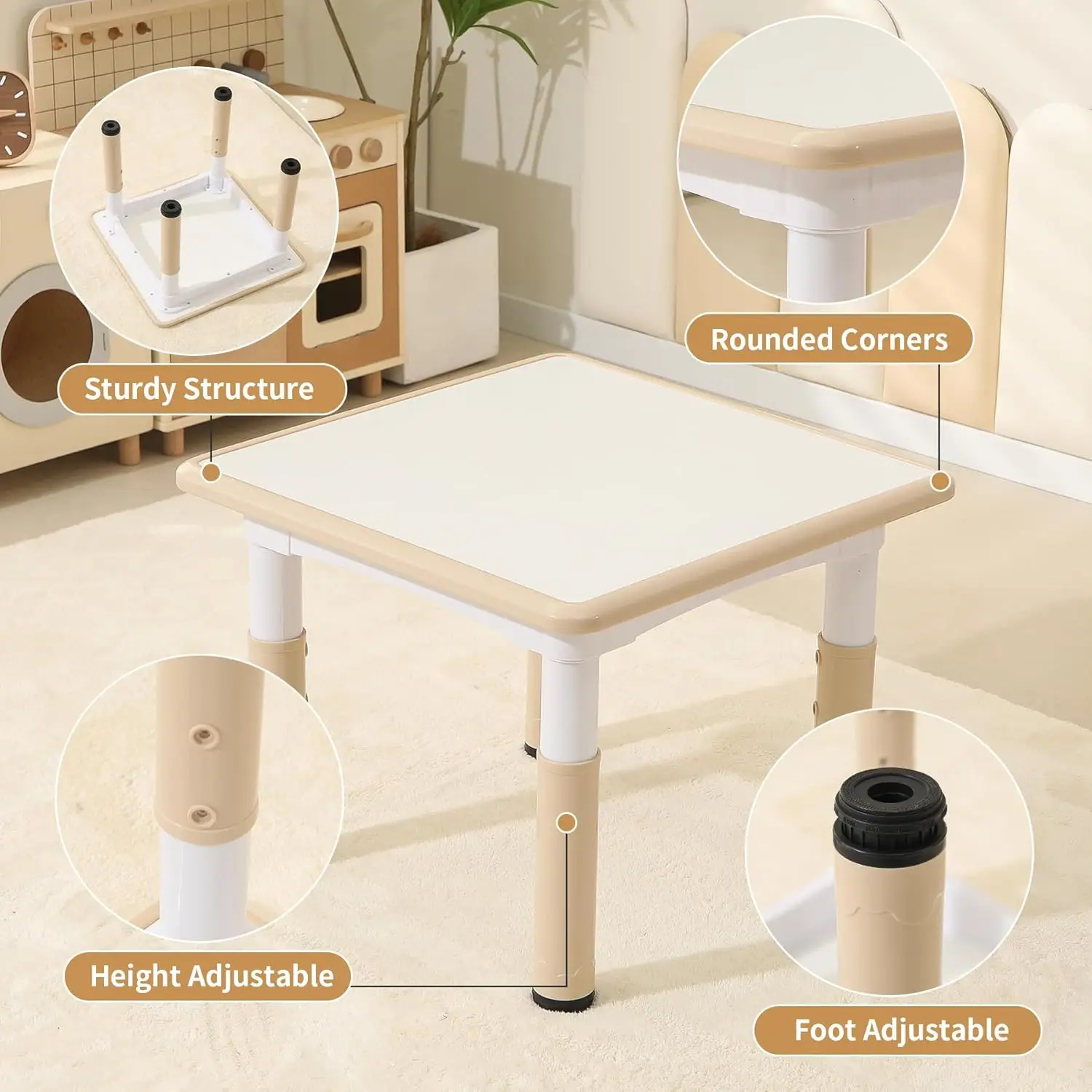 Our Kids Table and 2 Chairs Set features a height adjustable design, allowing it to grow with your child as they continue to develop and thrive. The anti-SLIP foot covers provide added stability and peace of mind, ensuring that the table and chairs stay securely in place during playtime or creative activities.
