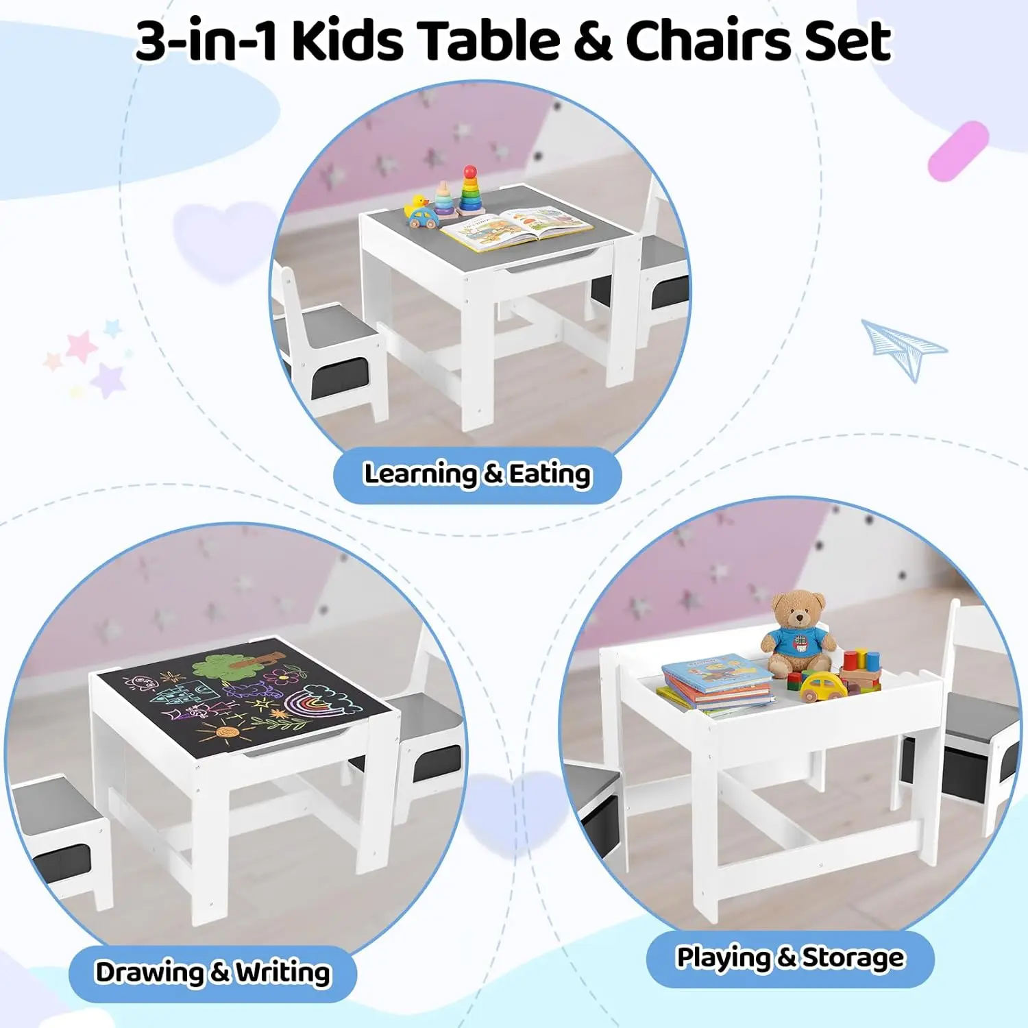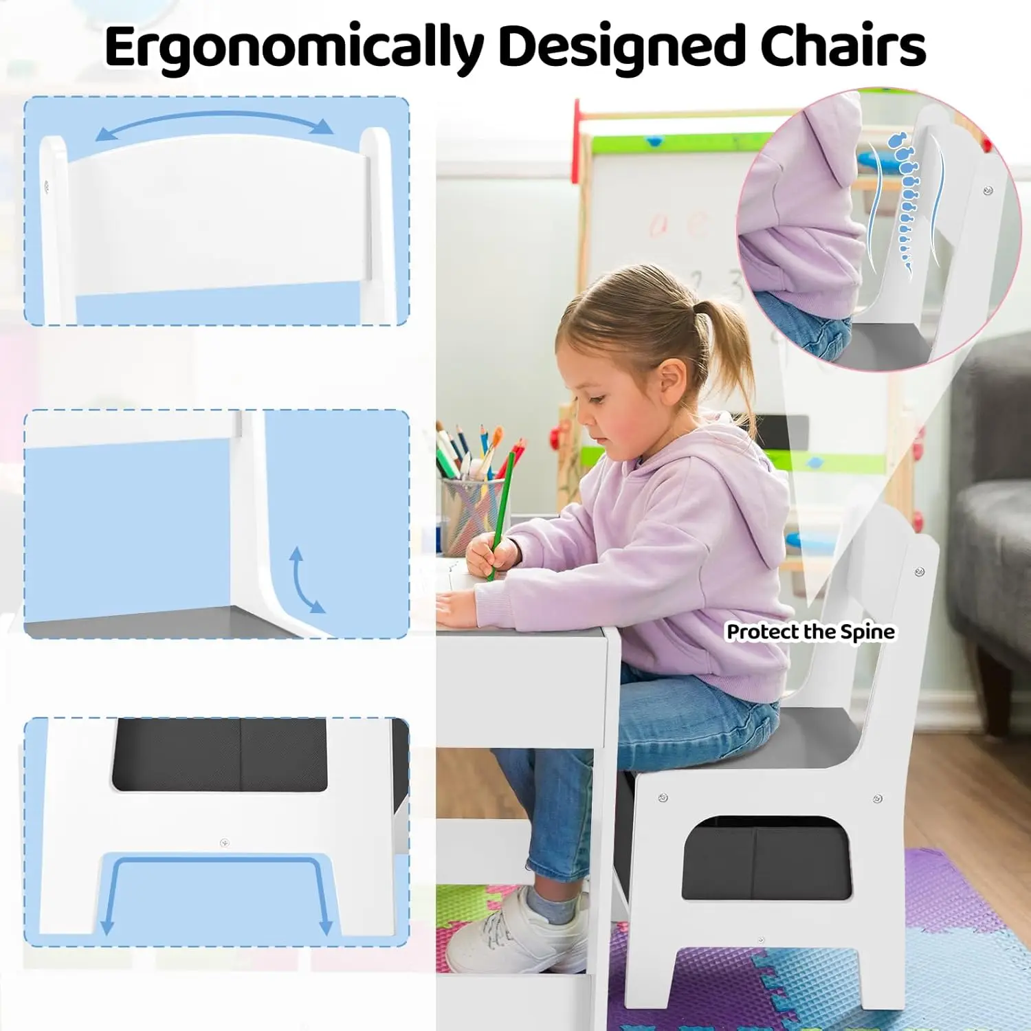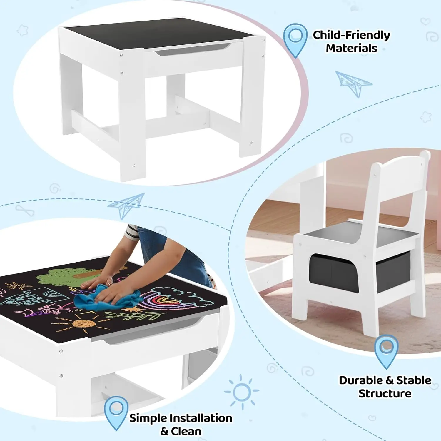 Kids Table and Chair Set, 4 in 1 Wooden Children Activity Table w/Storage, Reversible Deskboard, Blackboard, Detachable Tabletop