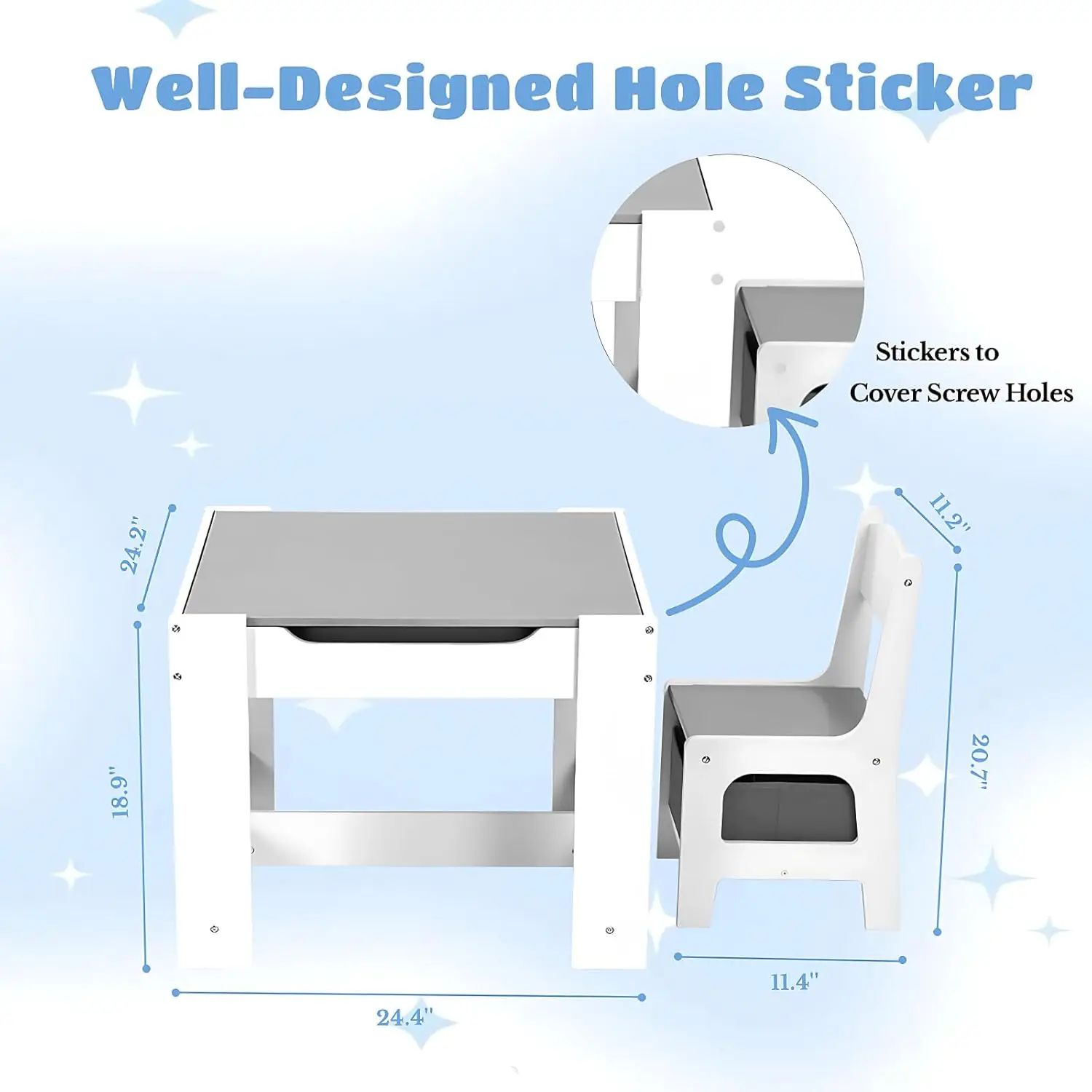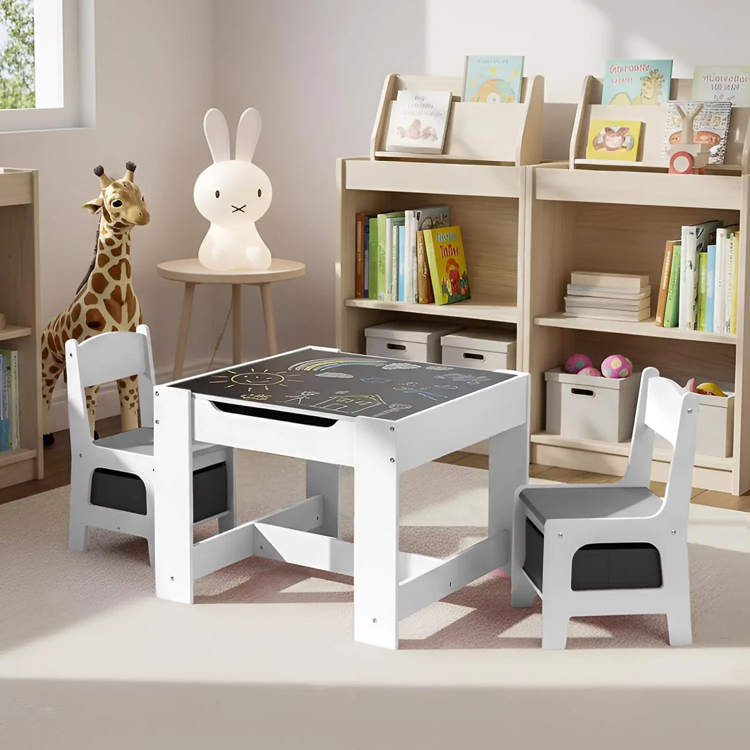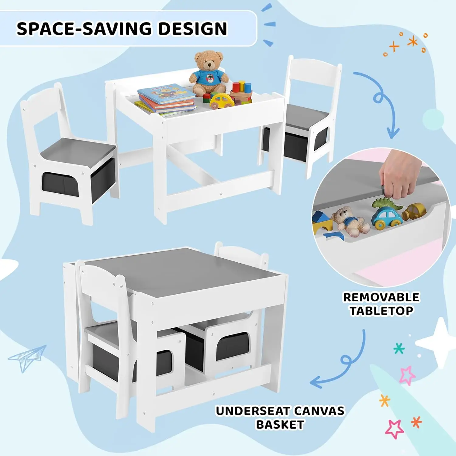 Kids Table and Chair Set, 4 in 1 Wooden Children Activity Table w/Storage, Reversible Deskboard, Blackboard, Detachable Tabletop