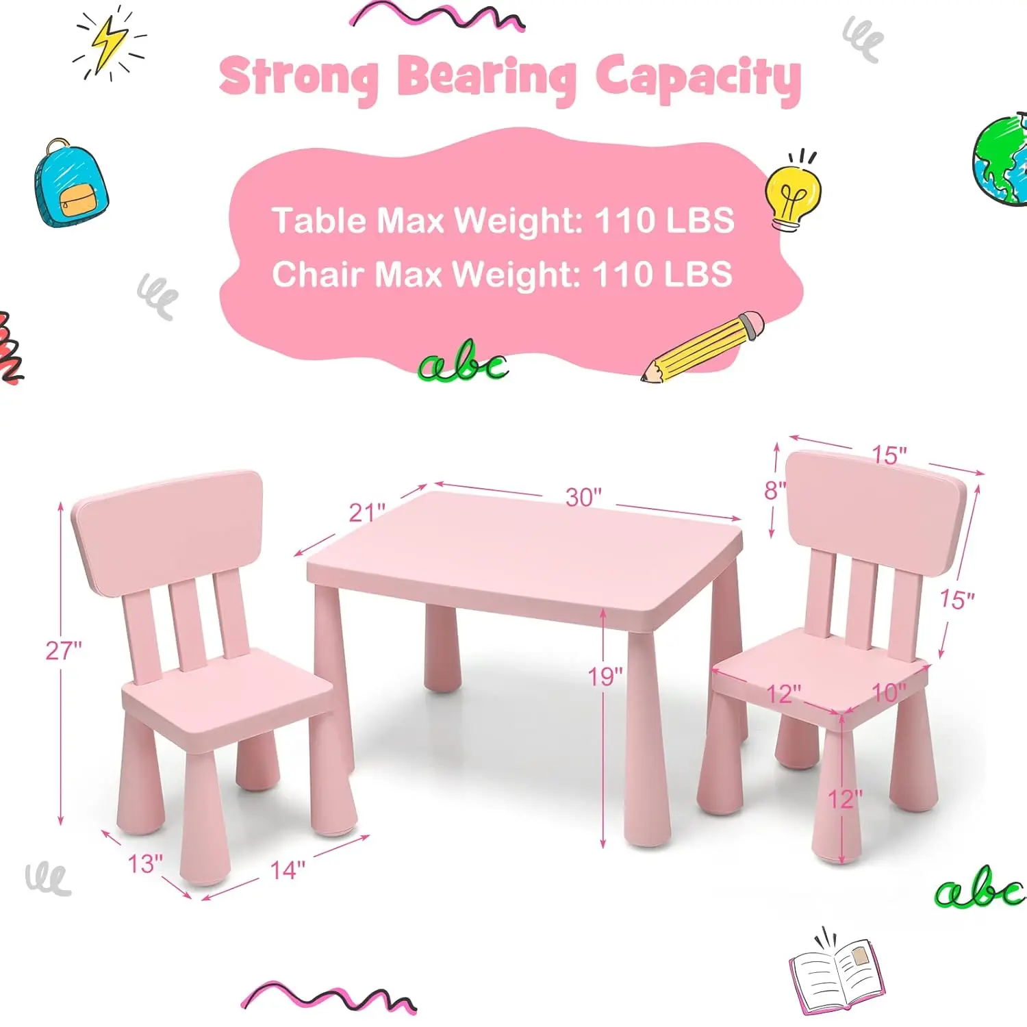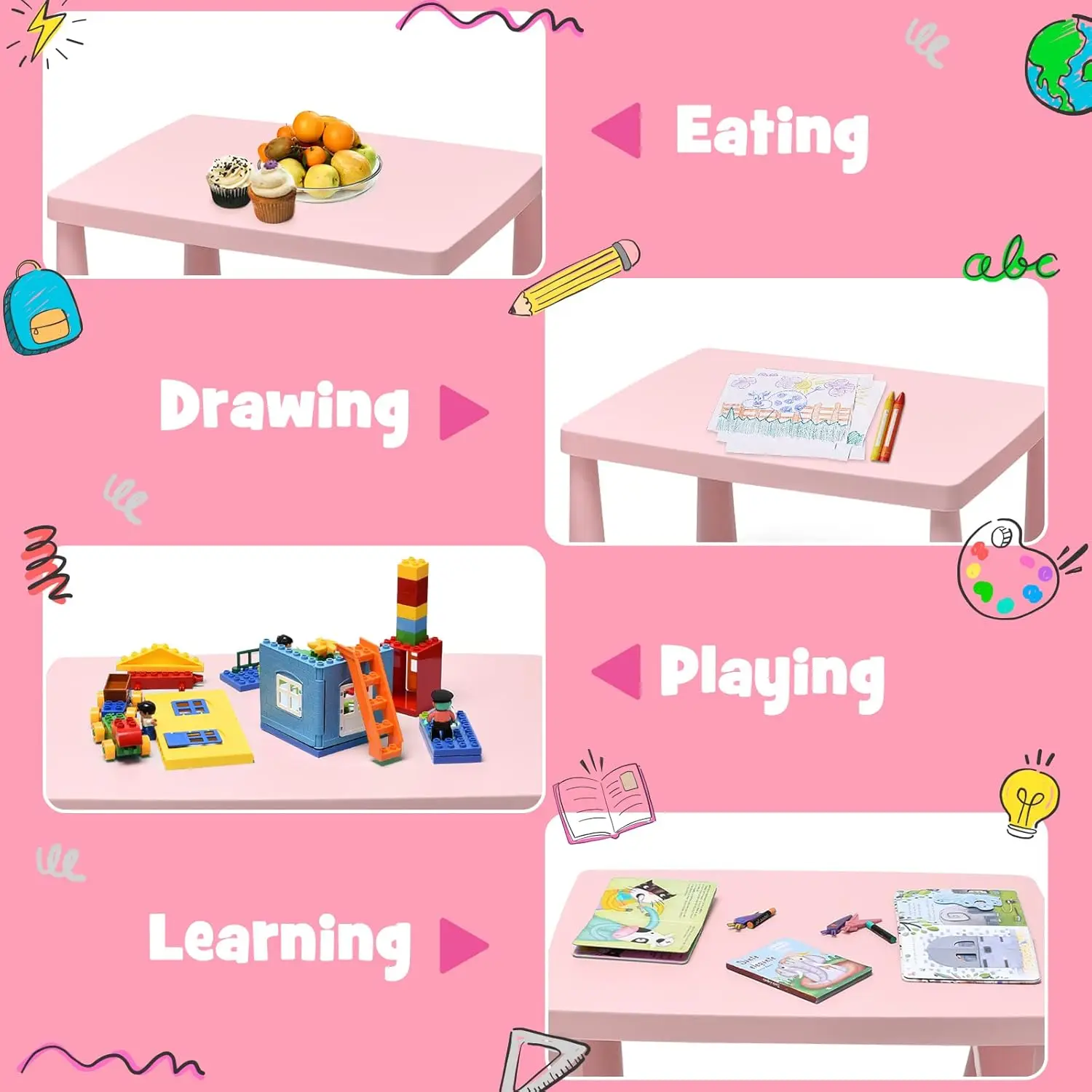 ️【Easy-To-Clean Tabletop】: The tabletop is smooth and adopts the premium material, ensuring that it won’t easily deform and decay. Plus, this kids table and chair set is super easy to clean just with the wet cloth.