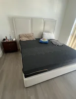 1 review for King Size Bed Frame with 64-inch High Headboard, Simple and Airy Linen Upholstered Platform Bed with Storage, Customized