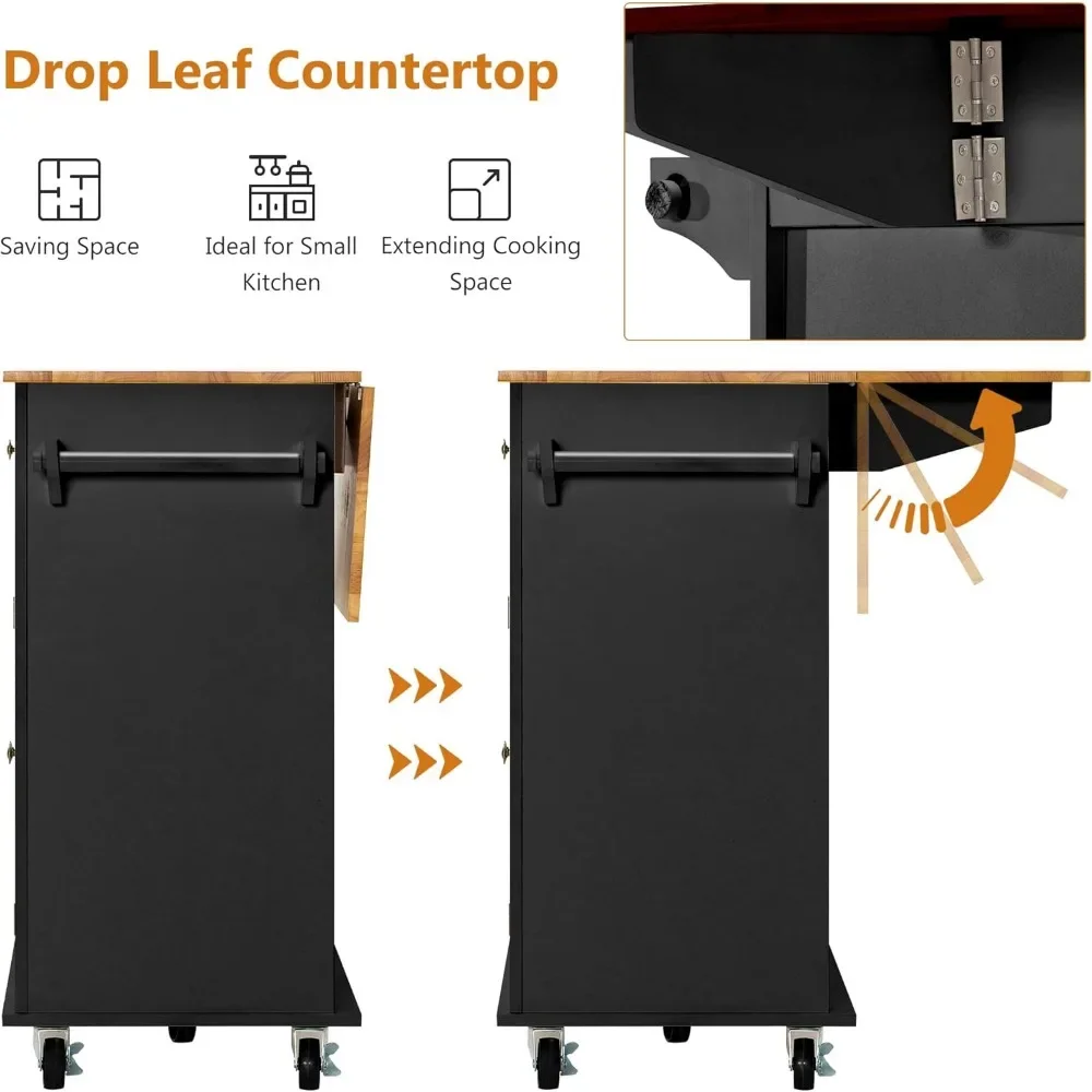 - 【With Drop Leaf Countertop】 The drop leaf countertop provides an extra work surface when needed. when you need to enjoy your dinner or just easily drop it down. when dropped down, and it will become a multipurpose kitchen car.