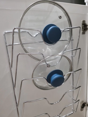 Very good support for lids, seems sturdy and of quality, looks like stainless steel, I was able to put 3 lids on it, I will buy another one.
