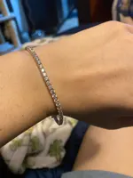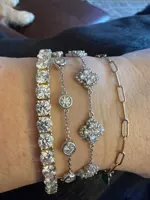 I got the cz bracelet to see if this seller had a good product before committing to a moissanite bracelet — wow! This is a winner — even cz, this bracelet is beautiful and sparkly, has nice weight to it, and a secure clasp. I’m delighted and cannot wait until i purchase my moissanite version.