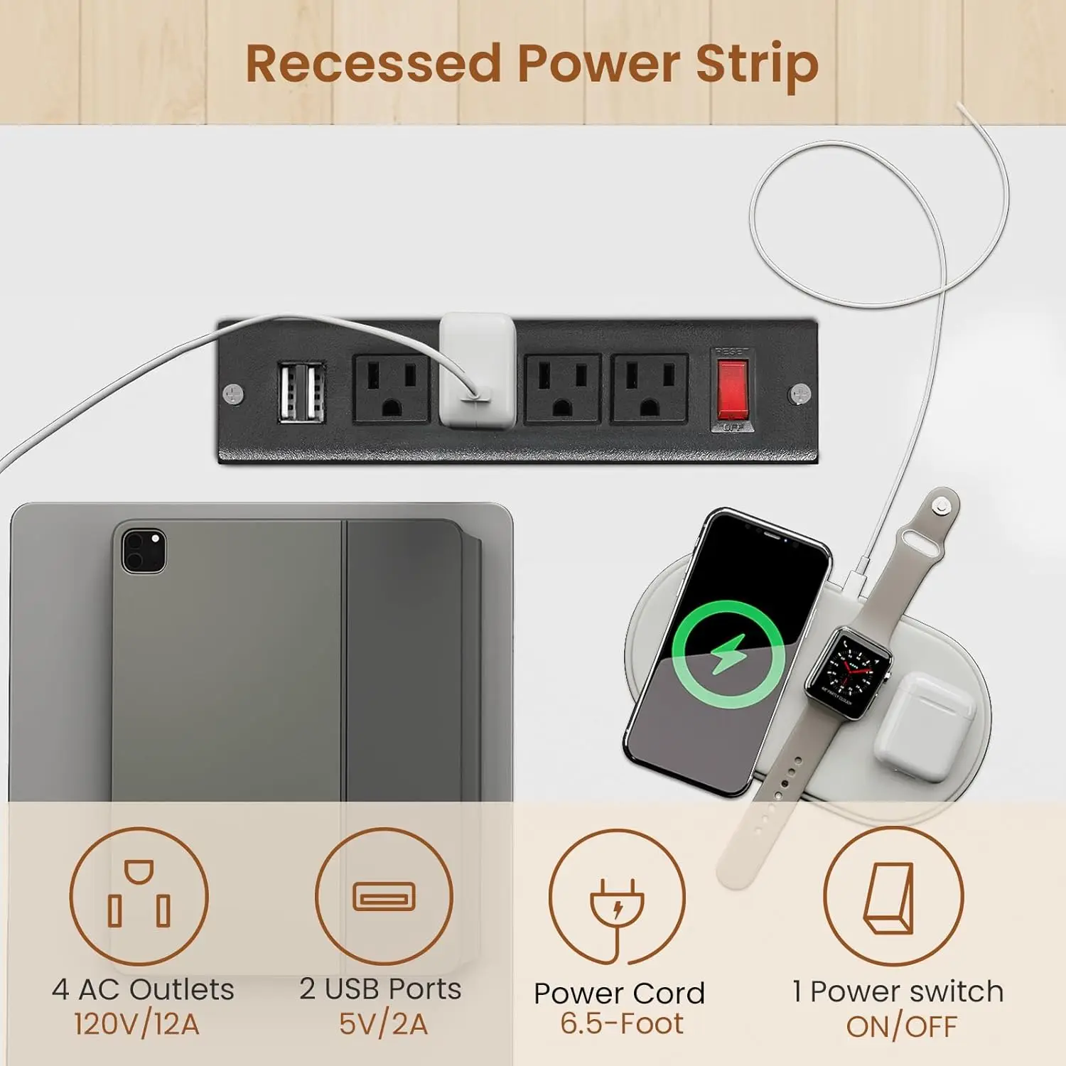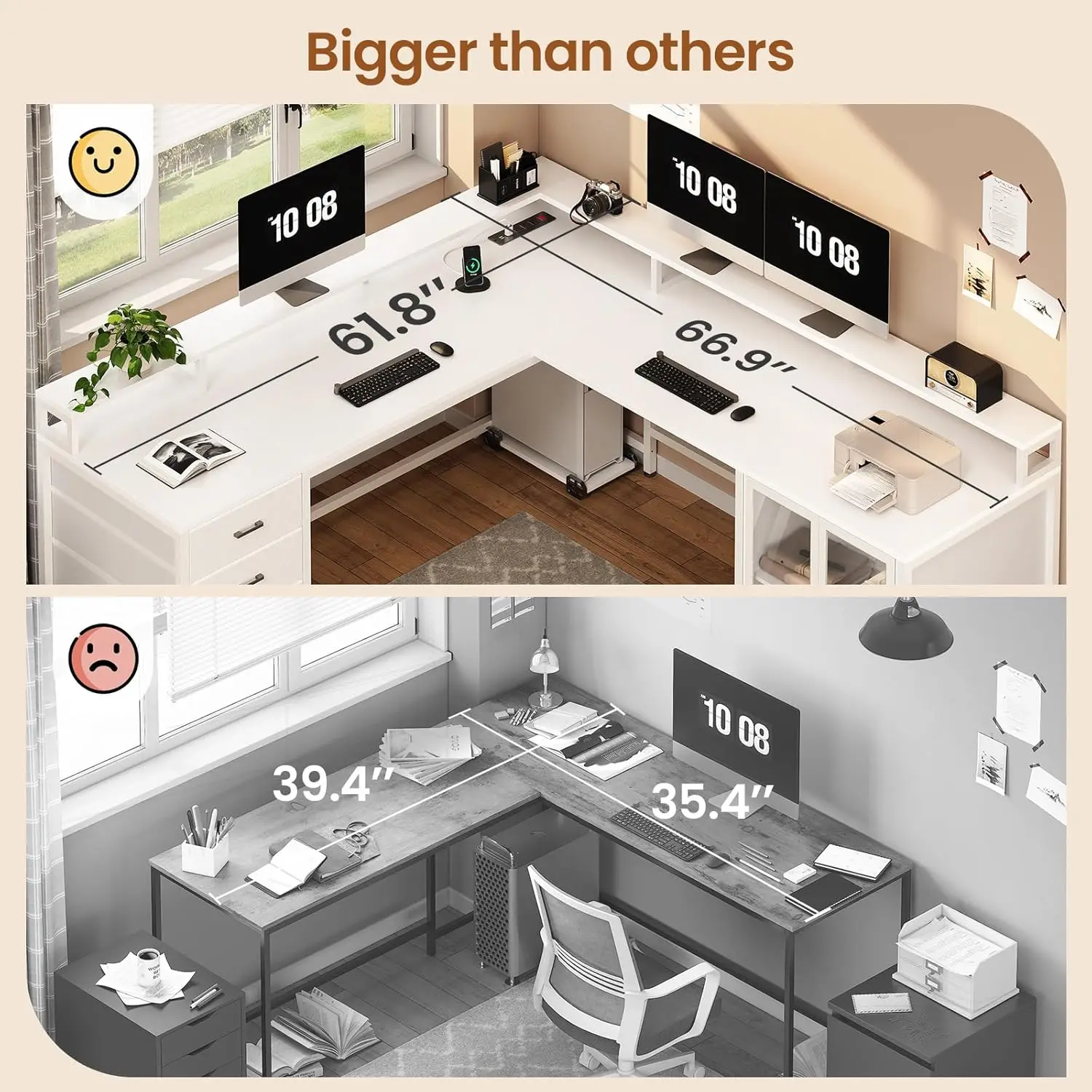【User Friendly】The L shaped computer desk includes a built-in power strip with 4 outlets & 2 USB Ports provides convenience for charging your gaming gear, tablet、printer or phone.Don’t worry about not having enough power sockets. Also includes an on-off switch, thanks to the on-off switch, one-button power off to ensure safe electricity use, which strengthens security.