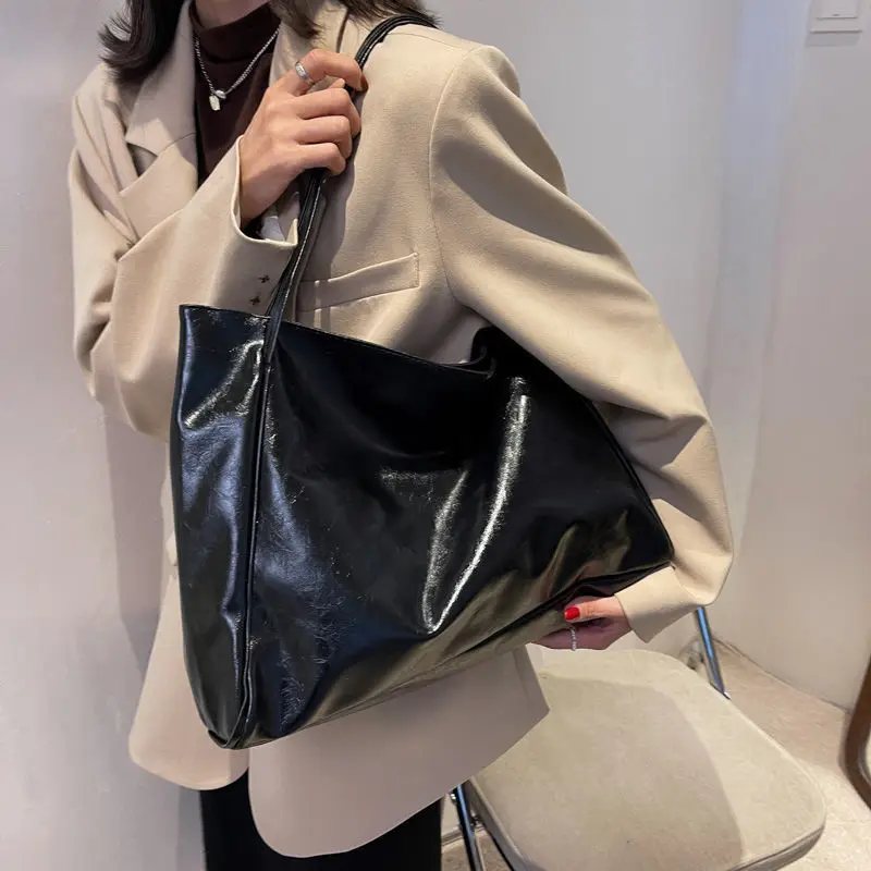 Ladies Fashion Large Bag Commuter Women’s Bag New Oil Leather Hundred Handbag Large Capacity Shoulder Bag Girls Tote Bag