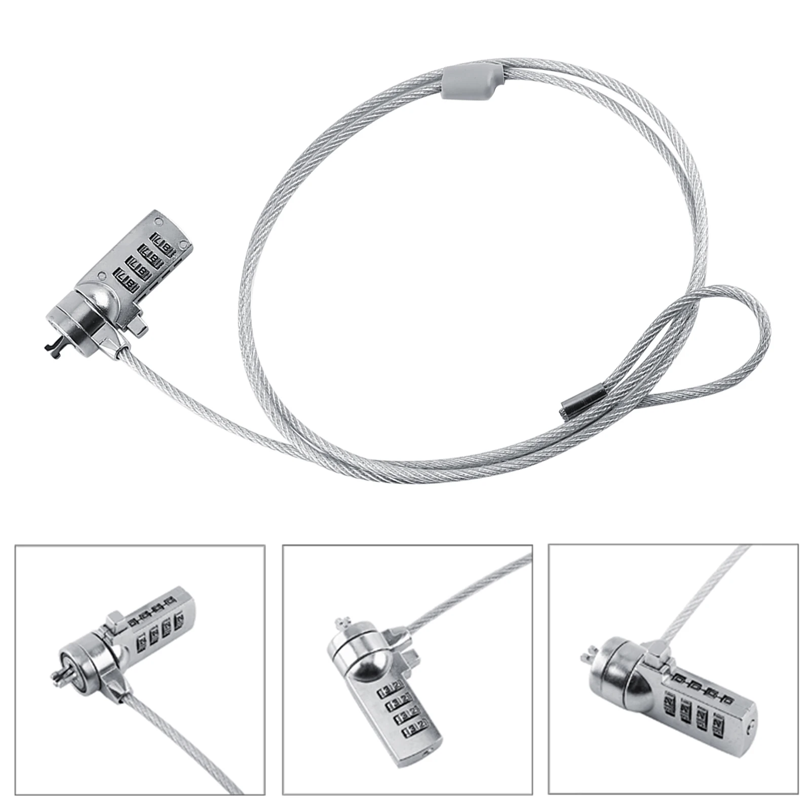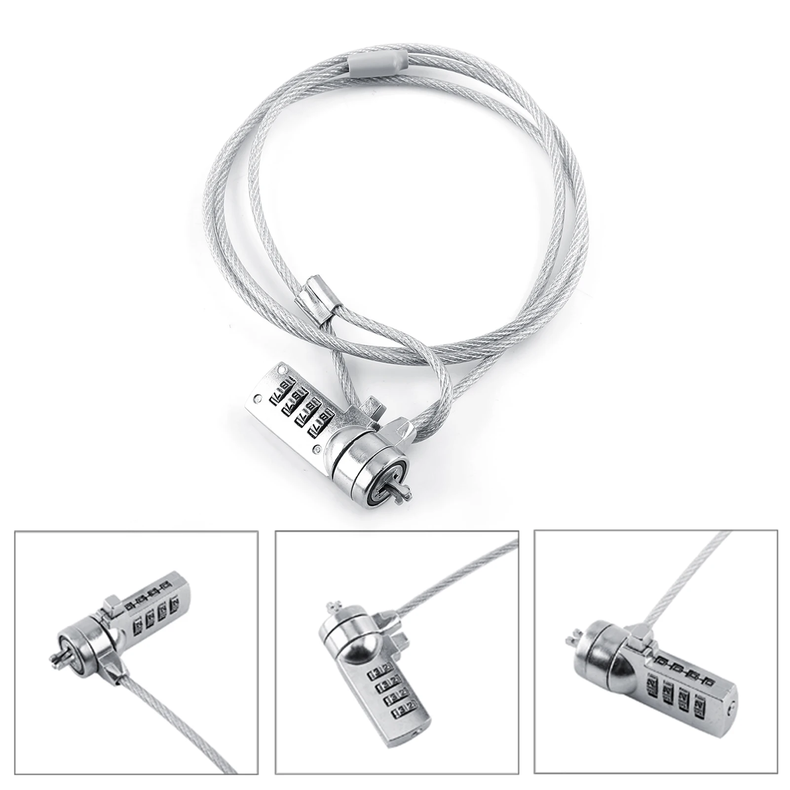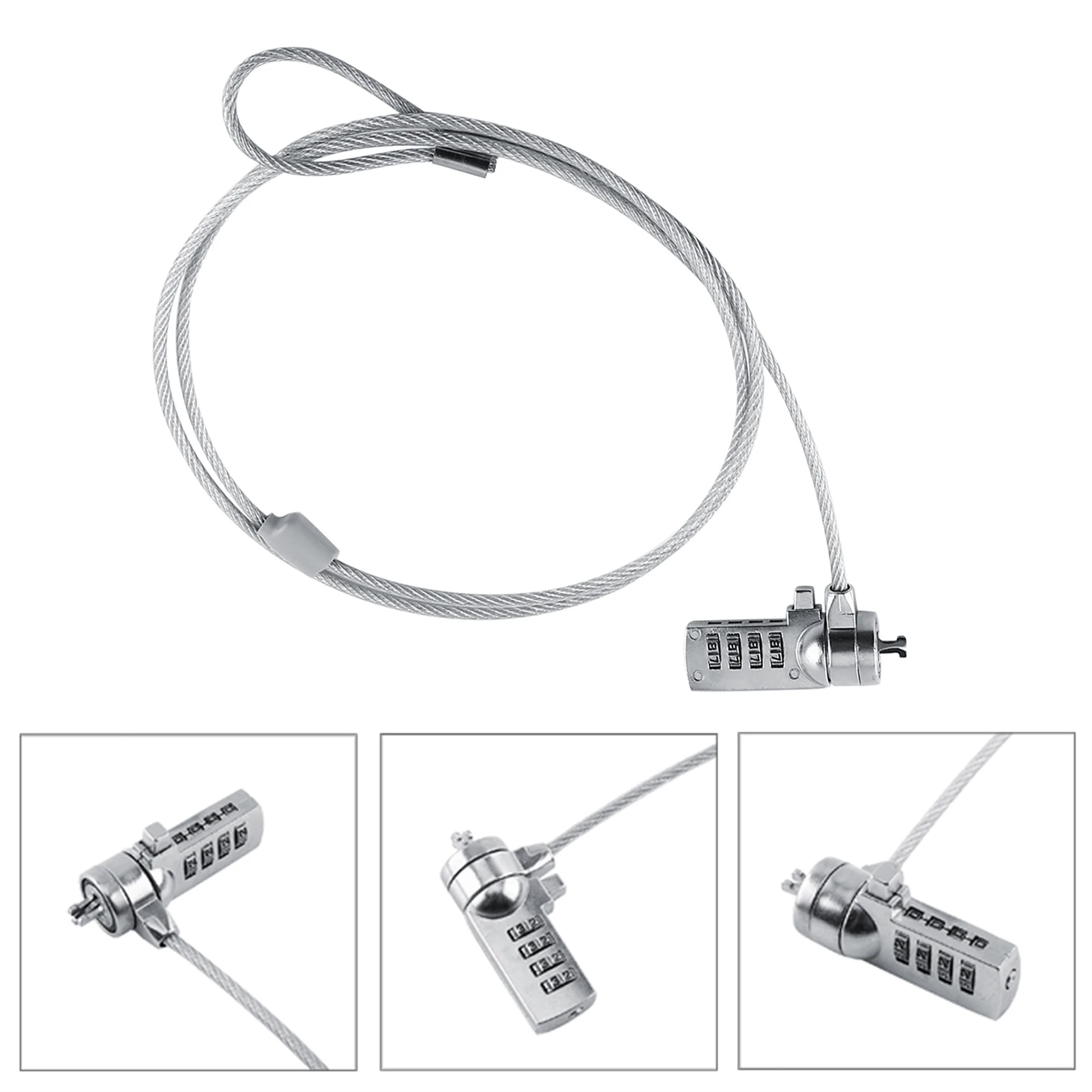 This is a laptop combination security lock cable with four digit password. Convenient operation and stable material, which is a perfect anti-theft cable for you. It works with all notebooks, desktops, docking stations with built in standard security locking slot hole.Â