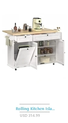 Tilt Out Trash Can Cabinet – The garbage bin storage cabinet is a great addition to your kitchen island. It can house a 13-gallon trash can (not included), preventing the spread of odors and keeping your kitchen & dining room fresher and cleaner